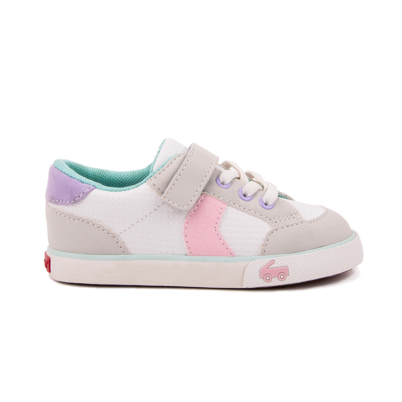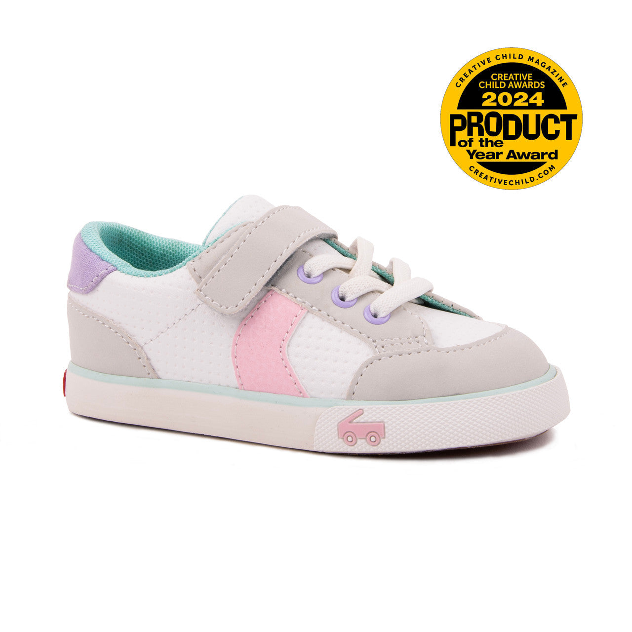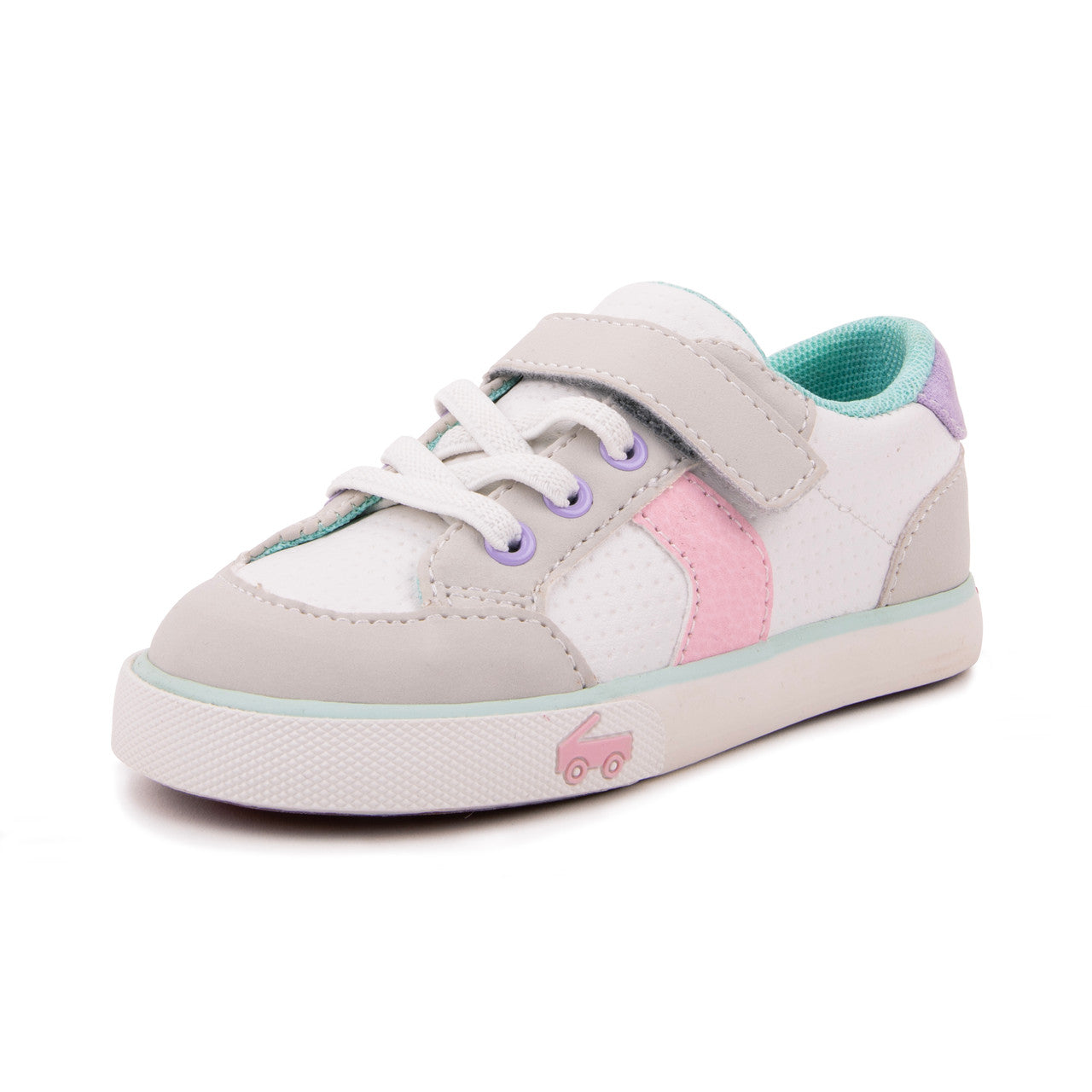 Semi-perforated leather paired with suede-feel overlays for durability. Recycled mesh lining is breathable and provides proper foot climate. Natural rubber outsole with herringbone lug pattern provides great traction for play. Hook-and-loop strap and faux elastic laces allow for secure fit and custom adjustability.. Classic SKR fit gives feet room to move and grow. Removable leather footbed conforms to foot and delivers comfort Awarded the Seal of Acceptance from the American Podiatric Medical Association (APMA)