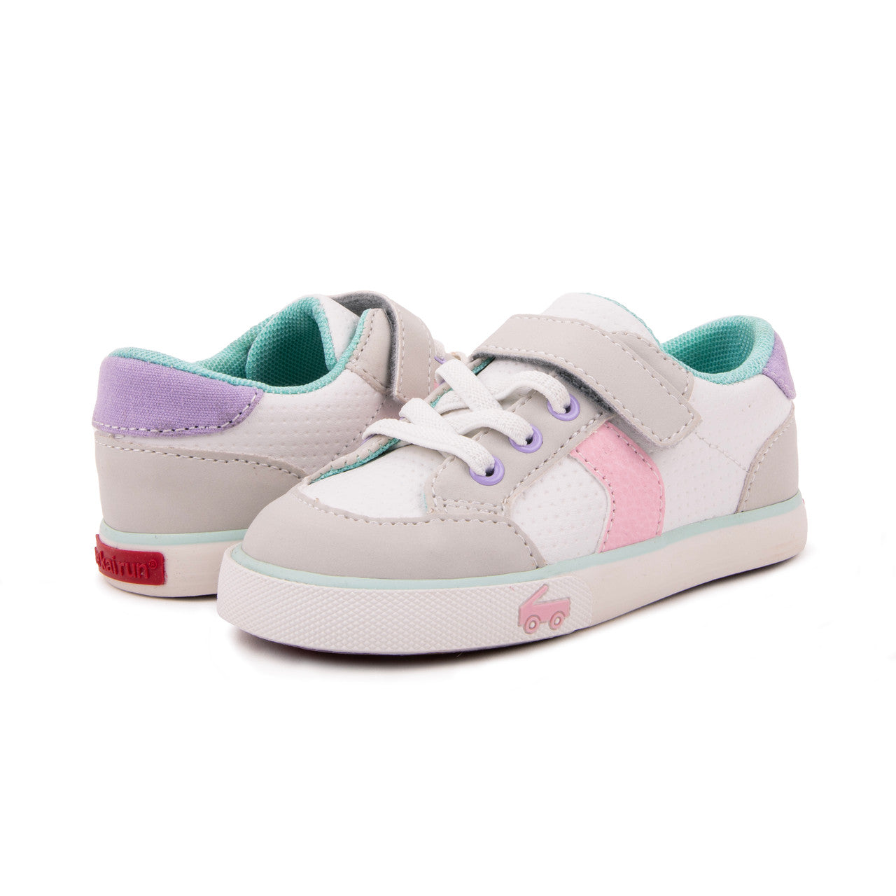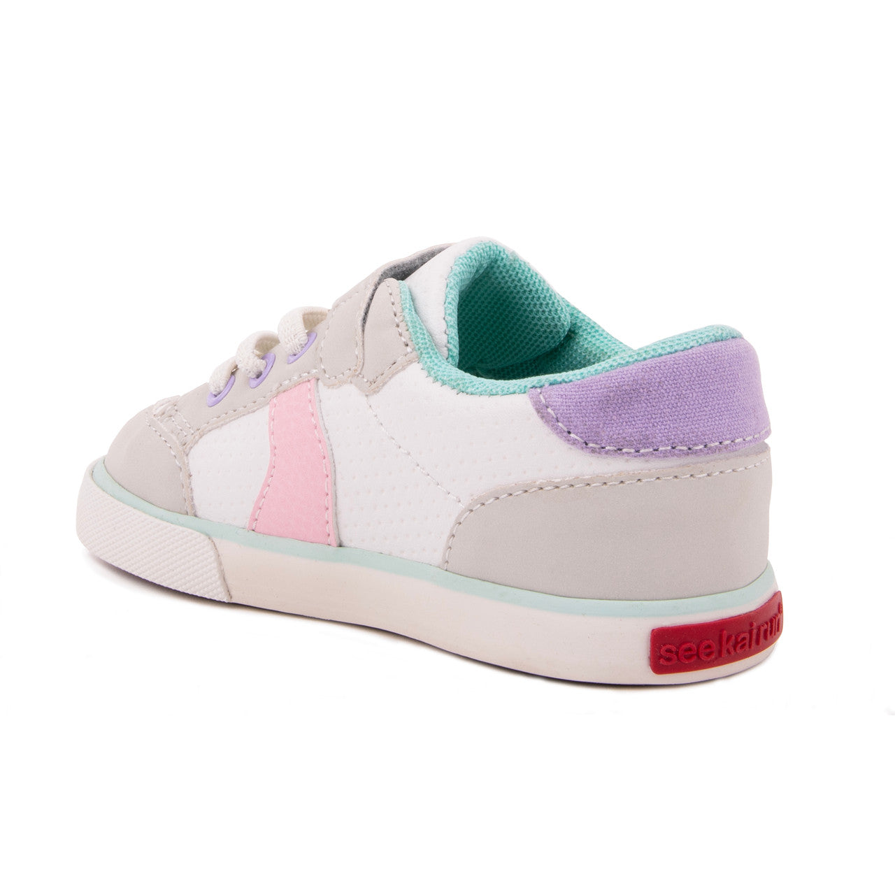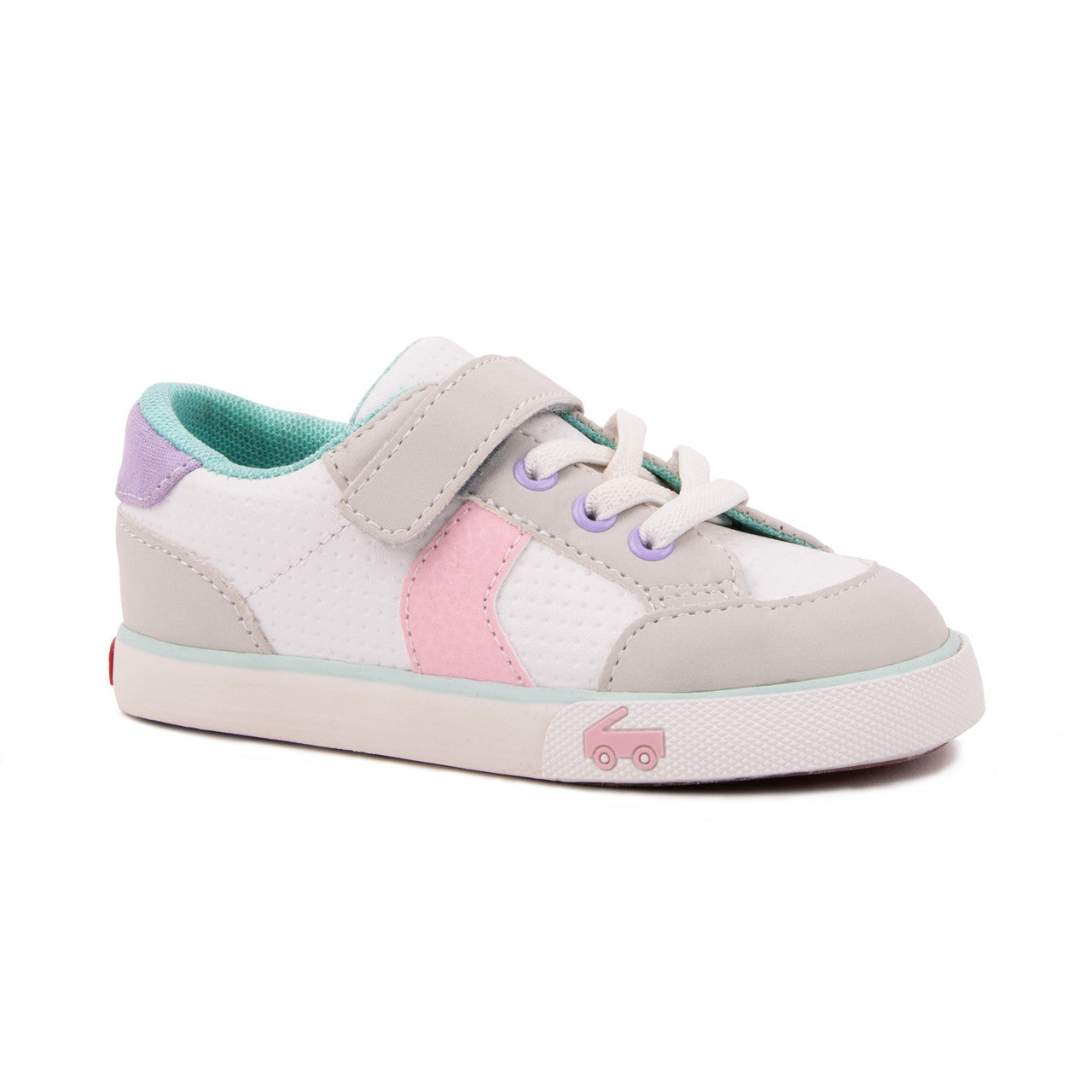 Semi-perforated leather paired with suede-feel overlays for durability. Recycled mesh lining is breathable and provides proper foot climate. Natural rubber outsole with herringbone lug pattern provides great traction for play. Hook-and-loop strap and faux elastic laces allow for secure fit and custom adjustability.. Classic SKR fit gives feet room to move and grow. Removable leather footbed conforms to foot and delivers comfort Awarded the Seal of Acceptance from the American Podiatric Medical Association (APMA)