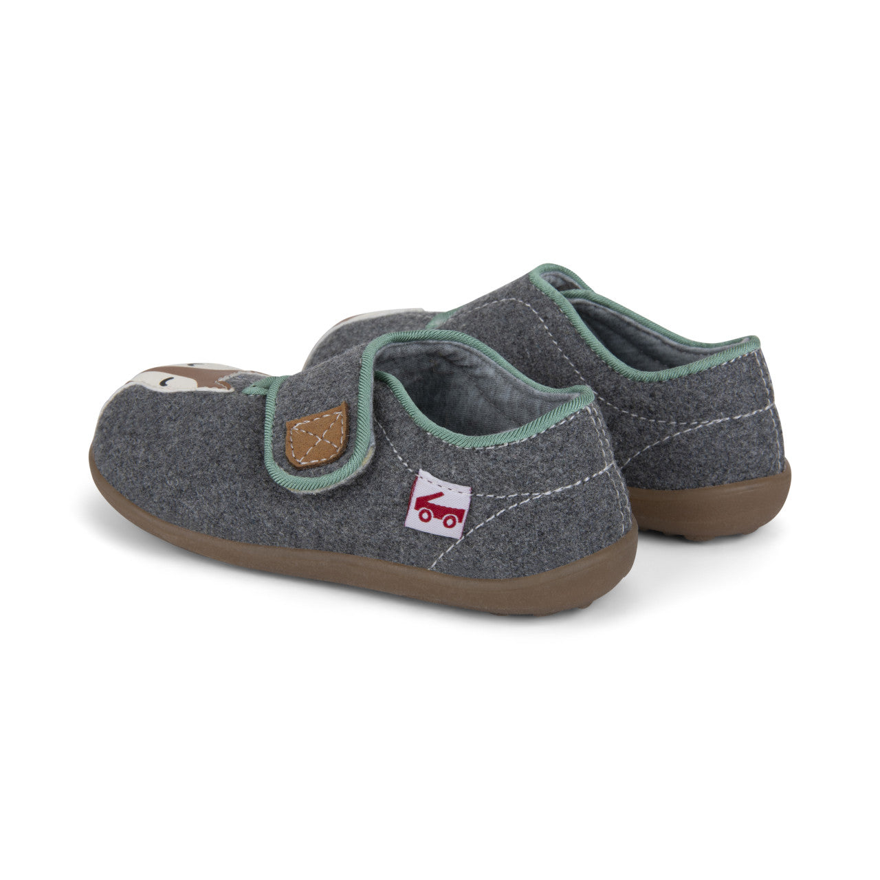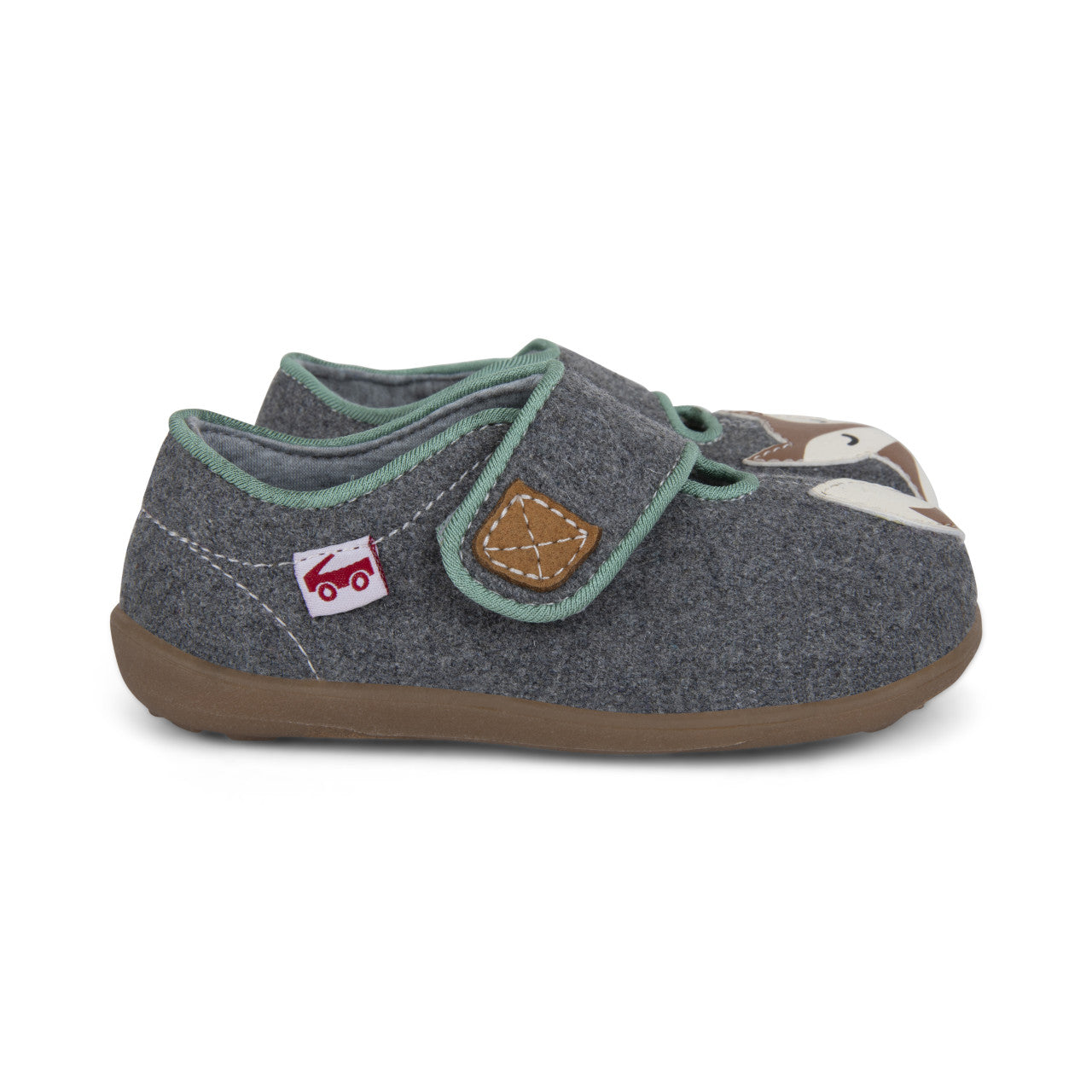 These cozy felted wool slippers feature a fox appliqué and soft warm materials. Toes have plenty of room to wiggle, while the hook and loop strap provides a secure fit.