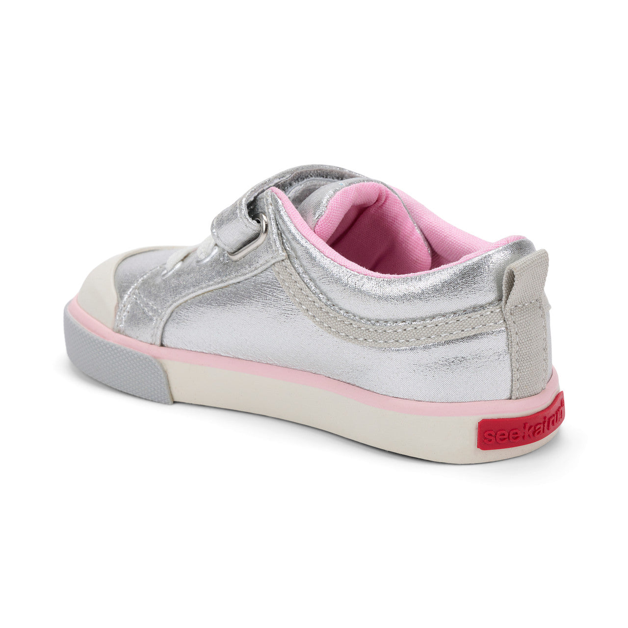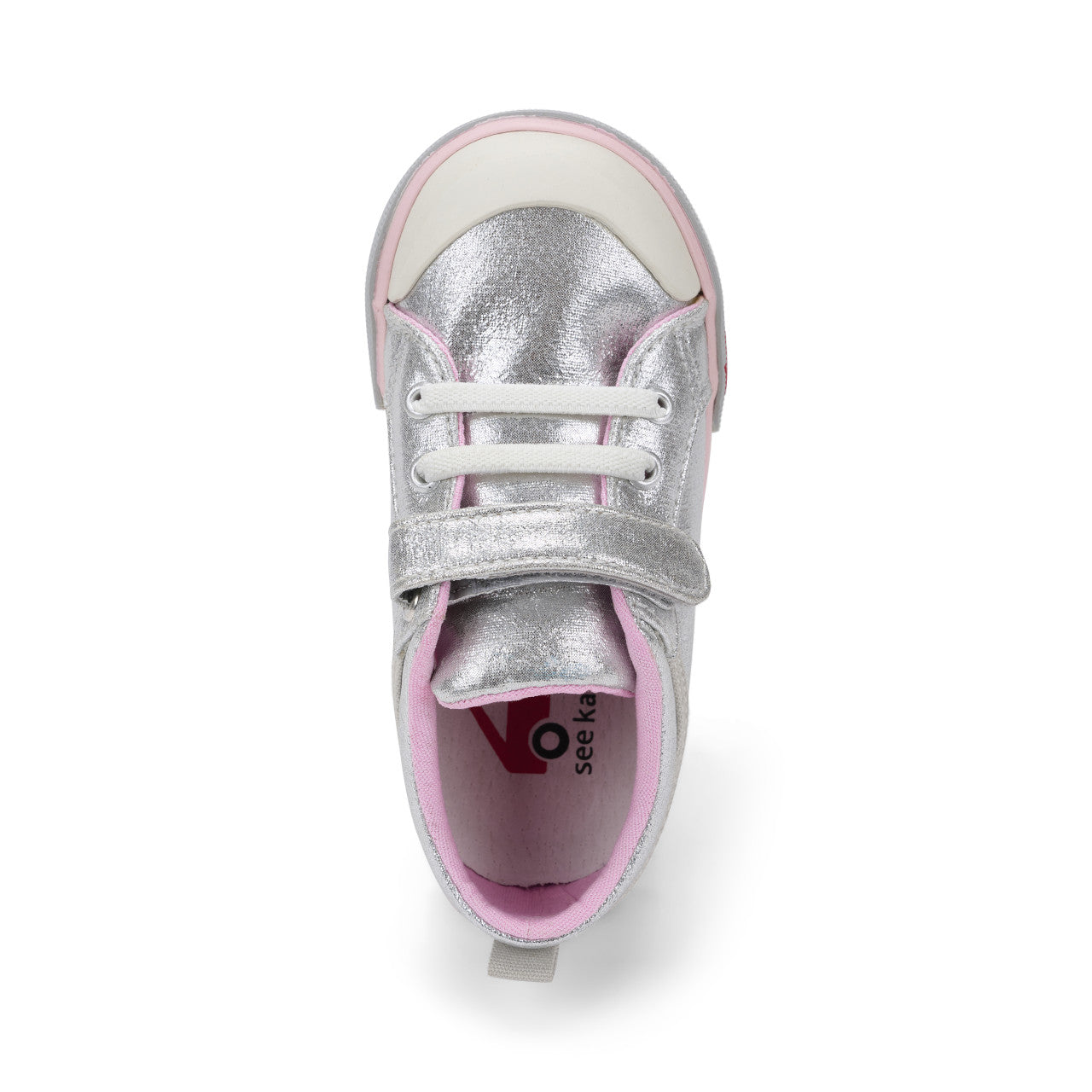 We’ve given this classic, fan-favorite sneaker a colorful seasonal update of silver shimmer with pink accents. The faux laces and an adjustable hook-and-loop strap make on/off effortless, leaving more time on the playground.