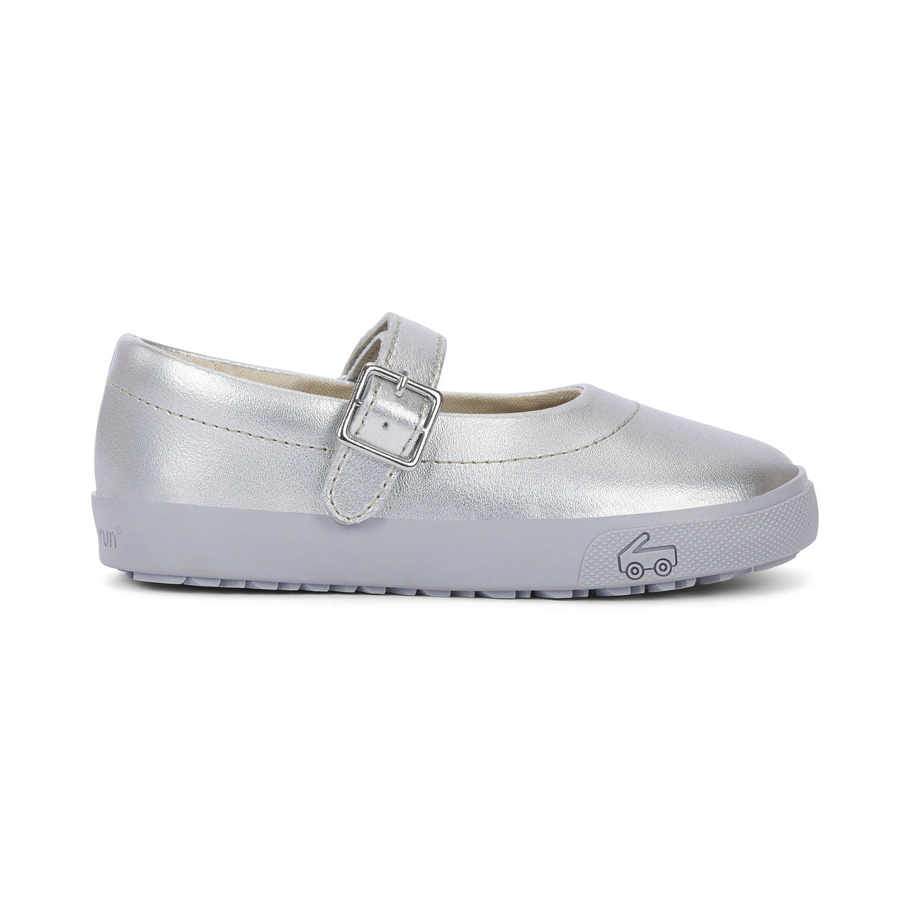 Standout occasion style starts with Lucia, a modern take on the classic Mary Jane. Showstopping silver leather conforms to her feet for comfort, while the lug rubber outsole provides just the right amount of traction for post-festivity play time.