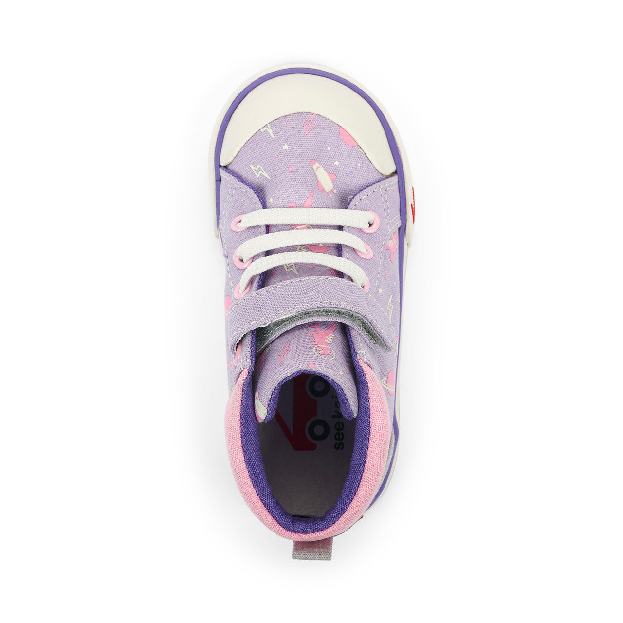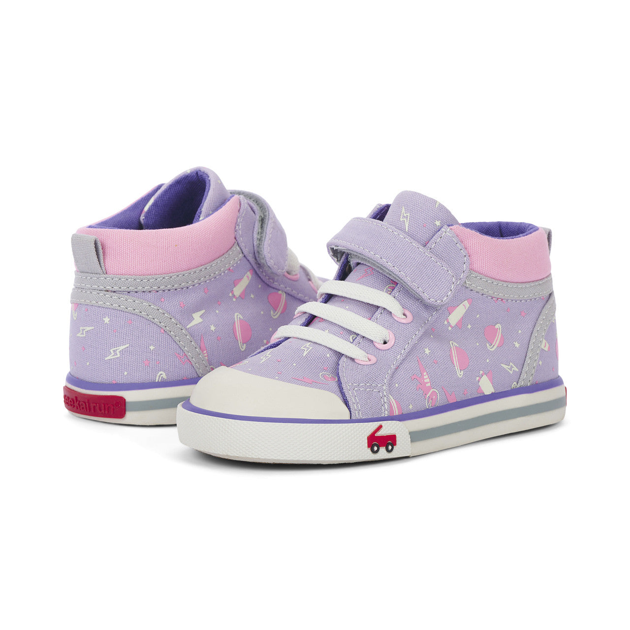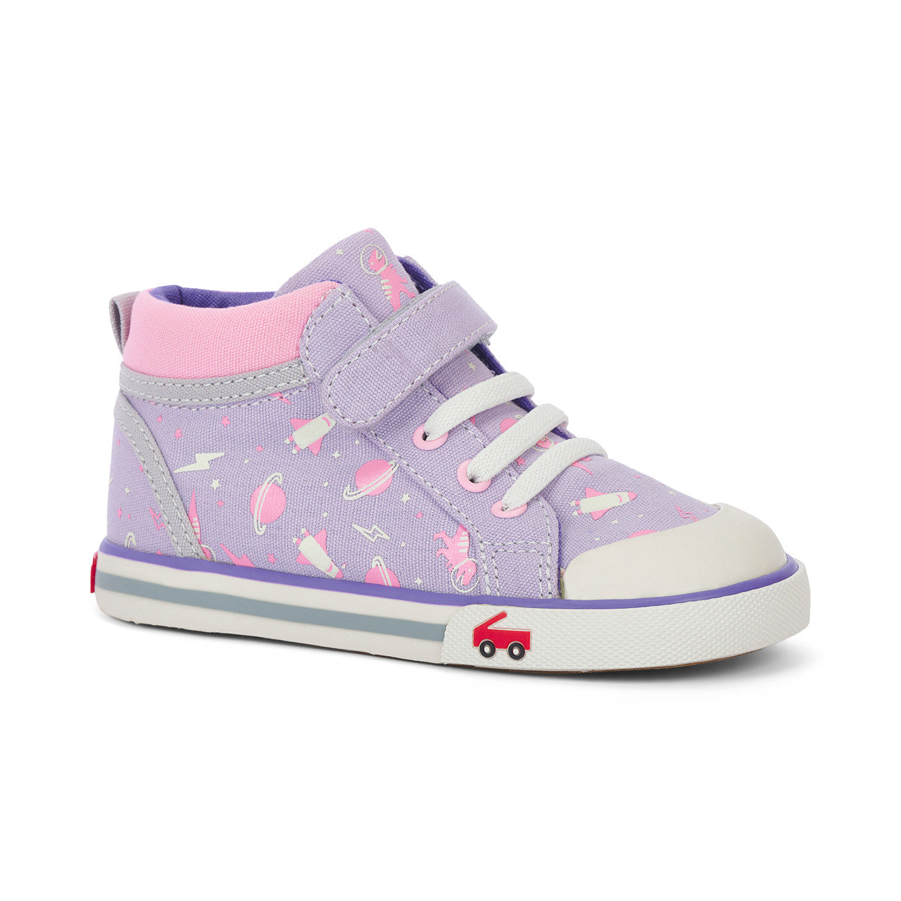 Her everyday style will be out of this world with our glow-in-the-dark Peyton high top, available only at seekairun.com. Comfortable and supportive for all-day play and finished with a futuristic space print, she’ll never want to leave home without it.