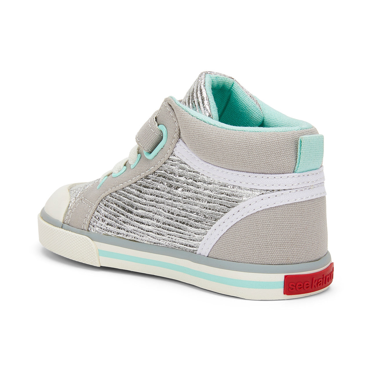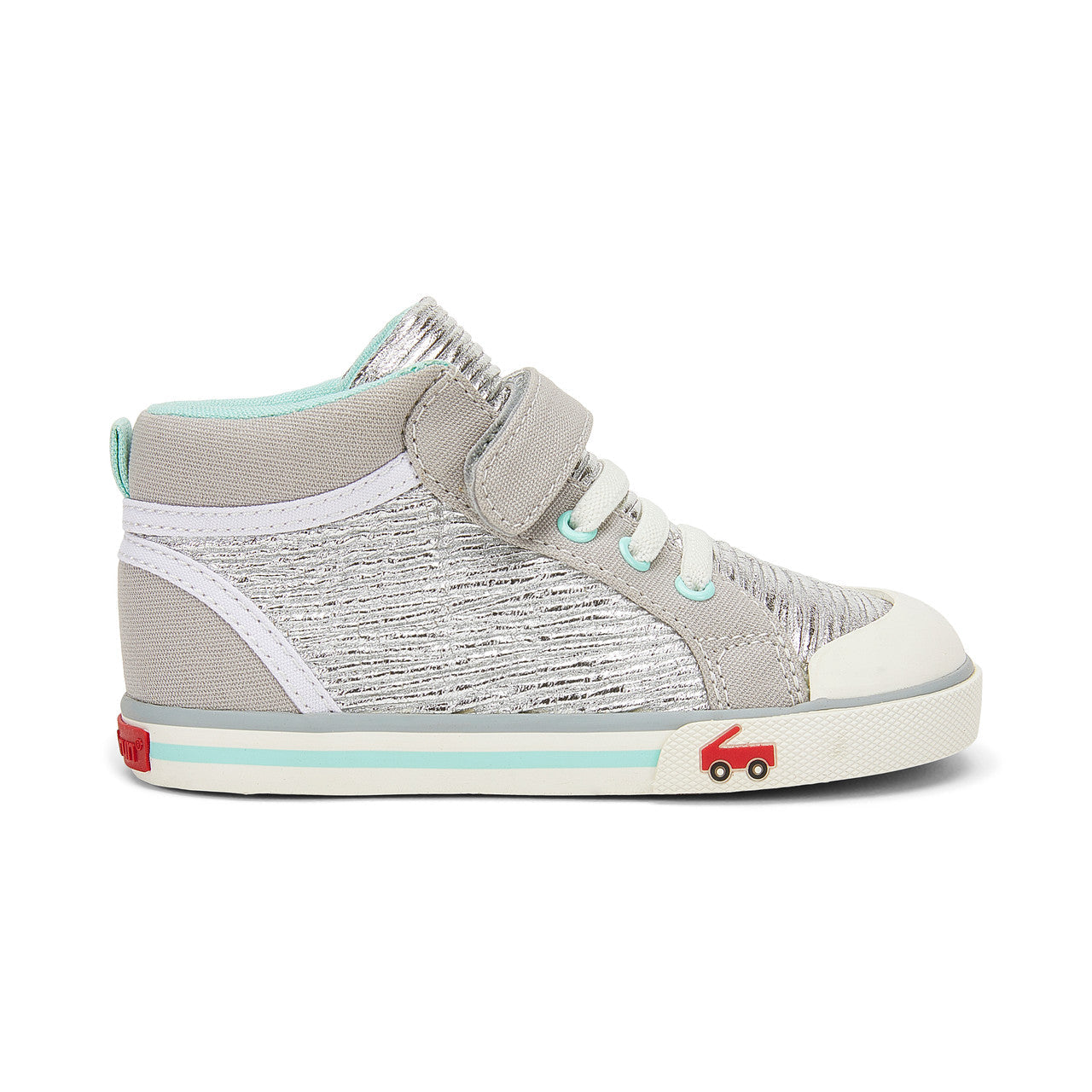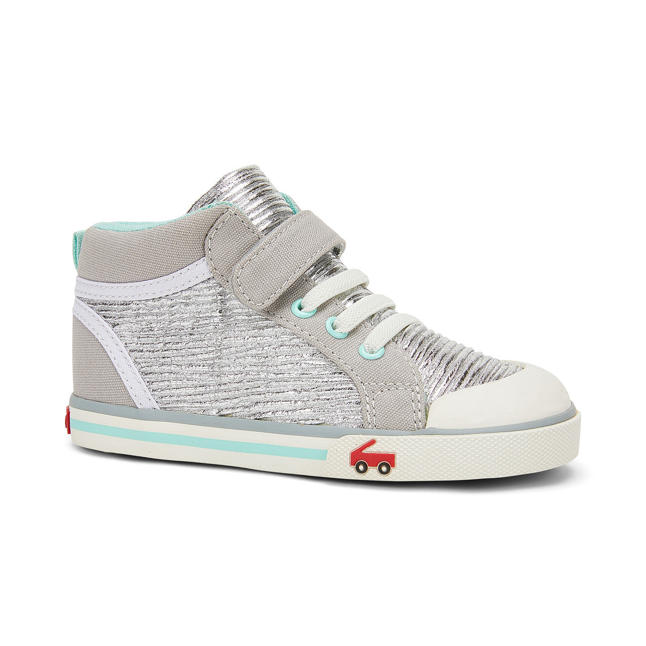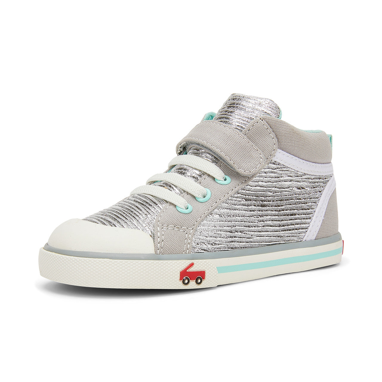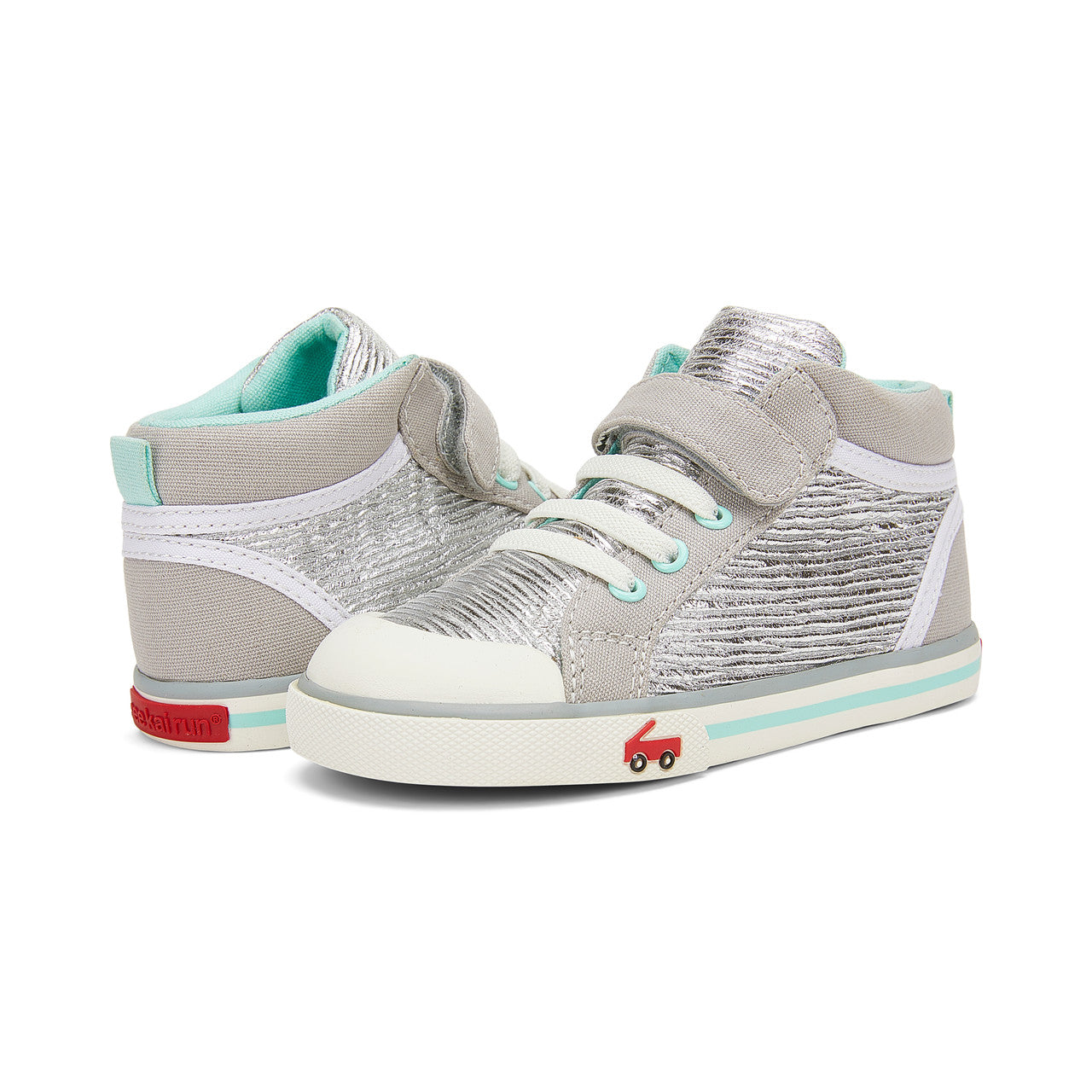 Cotton canvas and super-shine metallic textiles give this Peyton high-top sneaker a fun, party twist. The flexible materials and lightweight outsole make this sneaker an everyday choice for girls.