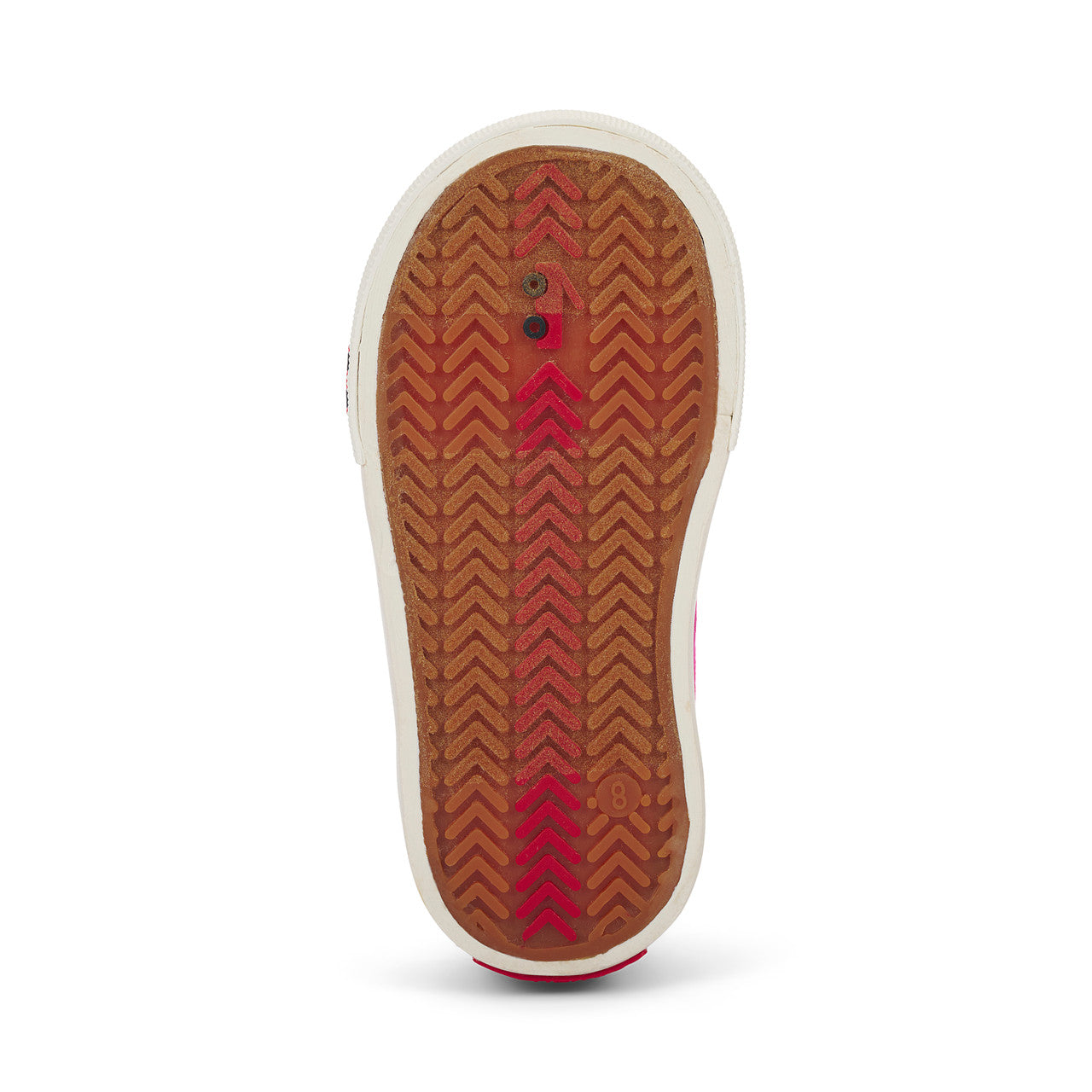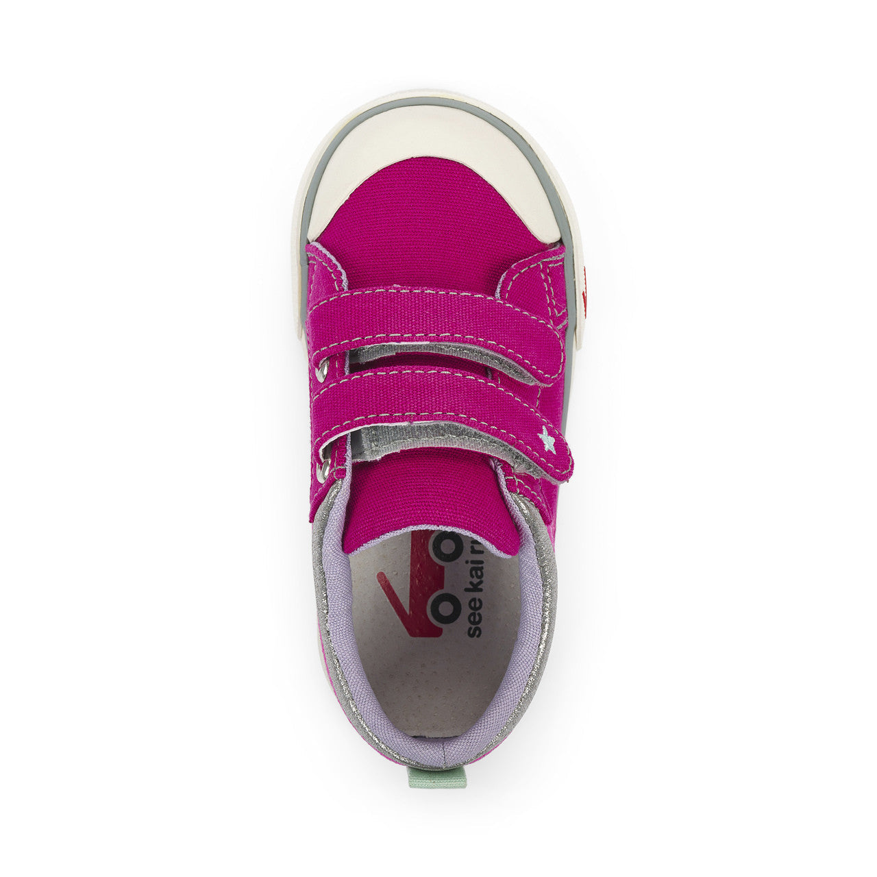 Printed canvas upper with silver shimmer textile and rubber toe cap for protection. Breathable cotton canvas lining and removable, leather-lined footbed is contoured for all-day comfort. Natural rubber outsole with herringbone lug pattern provides great traction for play. Double hook-and-loop straps and faux elastic laces allow for secure fit and custom adjustability. Classic SKR fit gives feet room to move and grow. Awarded the Seal of Acceptance from the American Podiatric Medical Association (APMA).