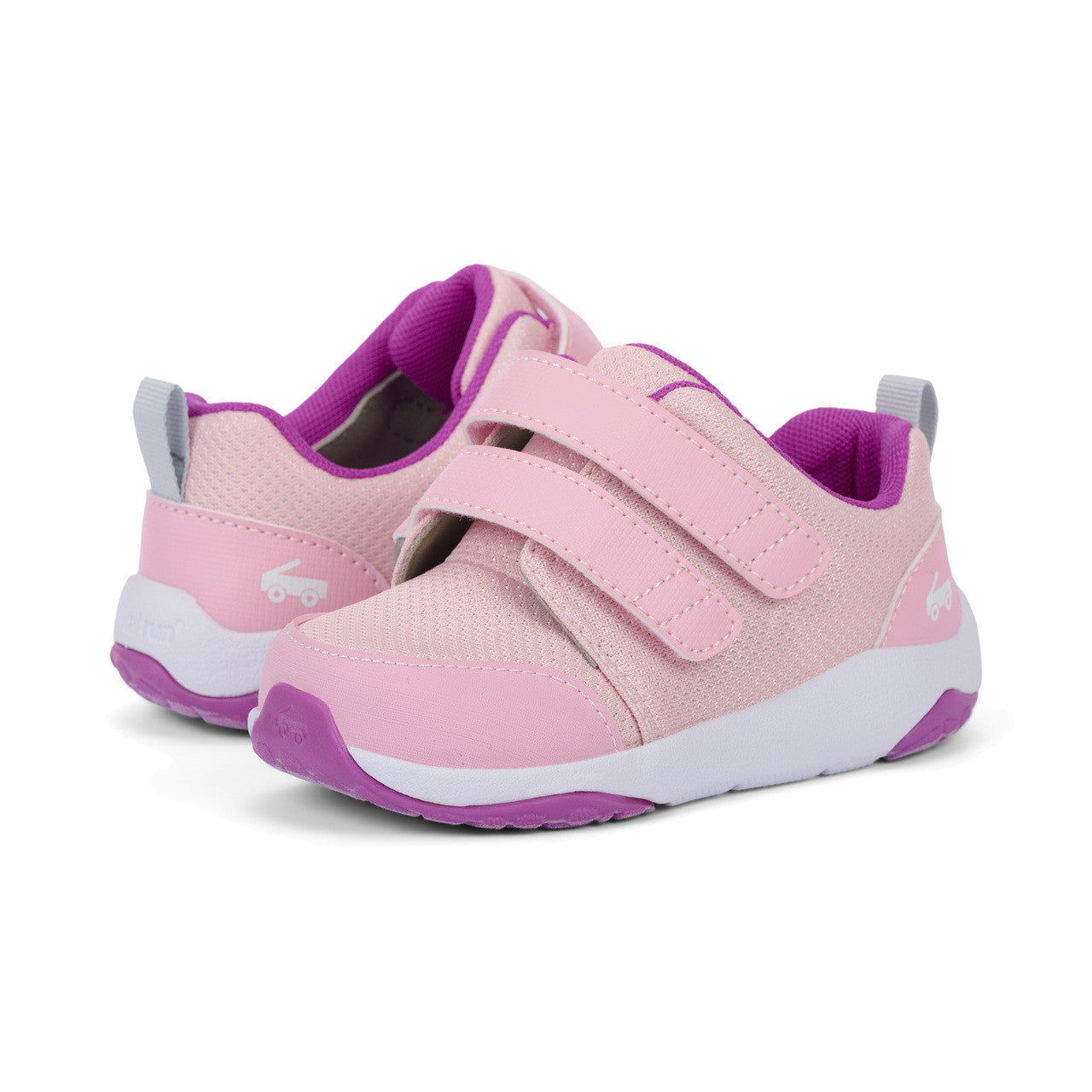 Order one size up if wearing with orthotics/AFOs.   Pink mesh textile upper with rubberized details and rubber toe cap for protection.   New, extra-durable microsuede lining for improved durability.   Removable footbed provides additional space for orthotics and braces.   Lightweight, cushioned FlexiRunâ„¢ EVA foam midsole. TPR full rubber outsole with traction inlays for excellent grip.   Double hook-and-loop strap is customizable and can be cut to fit. The straps’ unique hinge system keeps the straps open while putting shoes on.   Deep toe box lets toes wiggle and flex, which builds strength.   Vegan – made without any animal products.   Machine Washable    Care Instructions: Machine wash cold on gentle cycle with mild detergent. Do not bleach. Air dry.Â