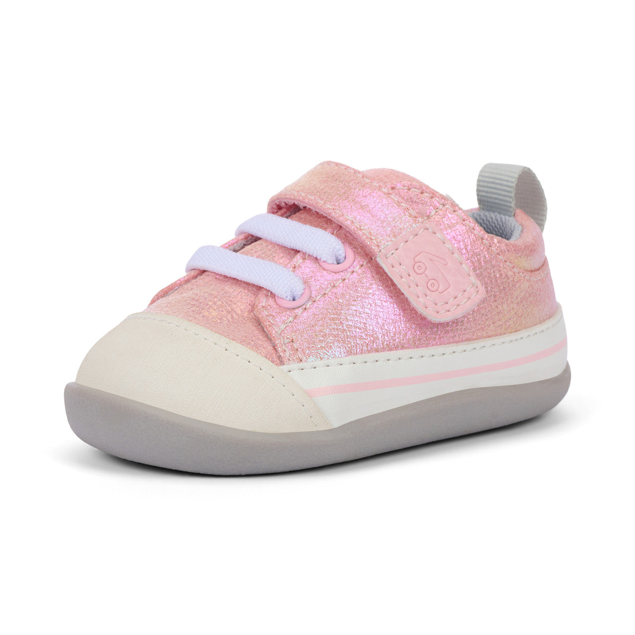 Set the stage for your little one's first steps with our Stevie first walker in Pink Metallic. Expertly designed to be lightweight, flexible and ultra-breathable, it delivers the perfect blend of support and comfort for your tiny explorer.
