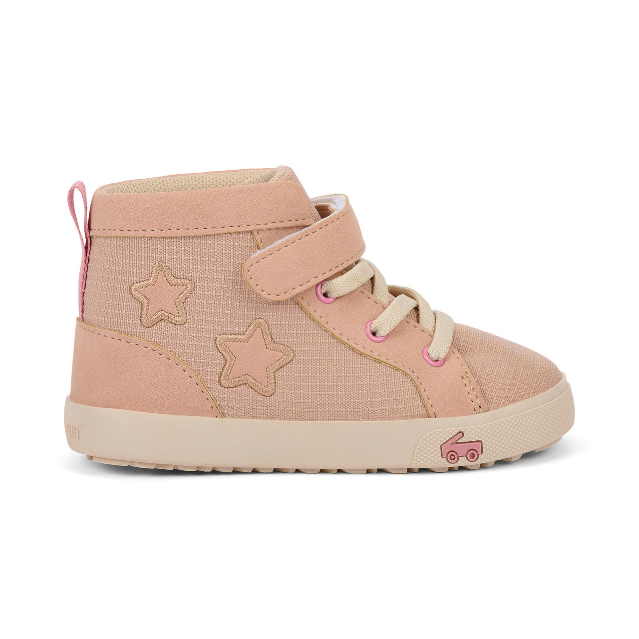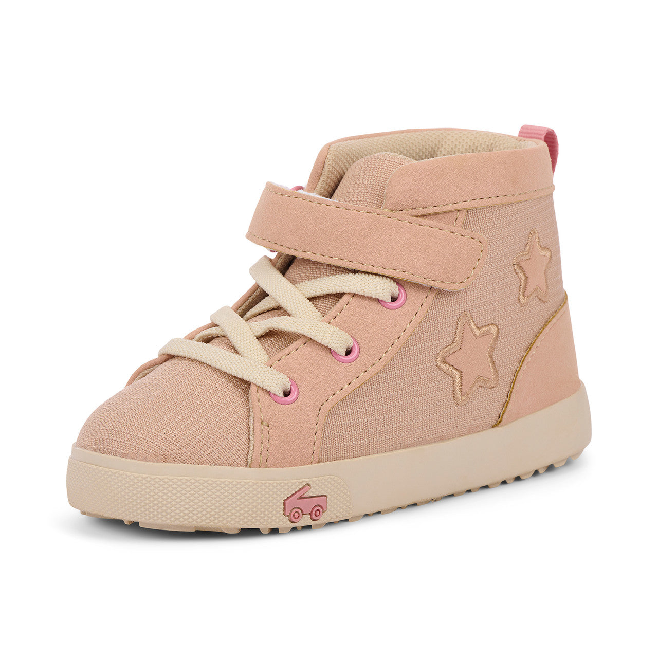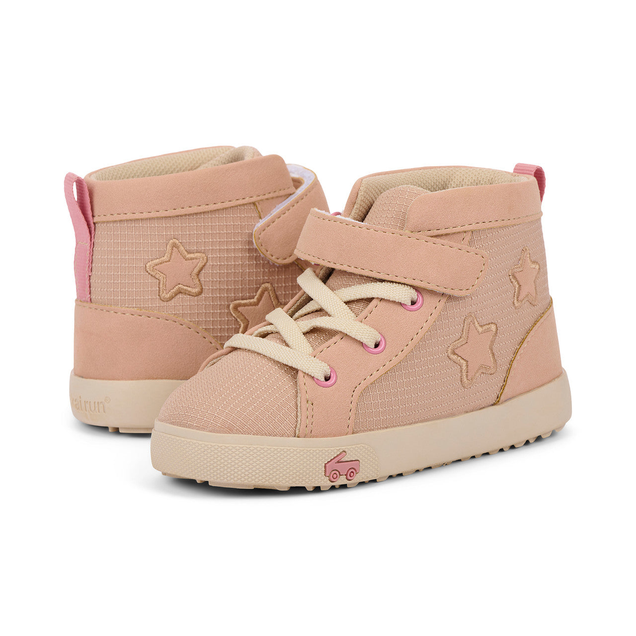 Faux suede and nylon textile upper with cut-out star details. Breathable recycled mesh lining and removable, leather-lined footbed is contoured for all-day comfort. Natural rubber outsole with deep lug pattern provides great traction for play. Hook-and-loop strap and faux elastic laces allow for secure fit and custom adjustability. Classic SKR fit gives feet room to move and grow. Care Instructions: Spot clean using a mild detergent and damp cloth. Allow to air dry.