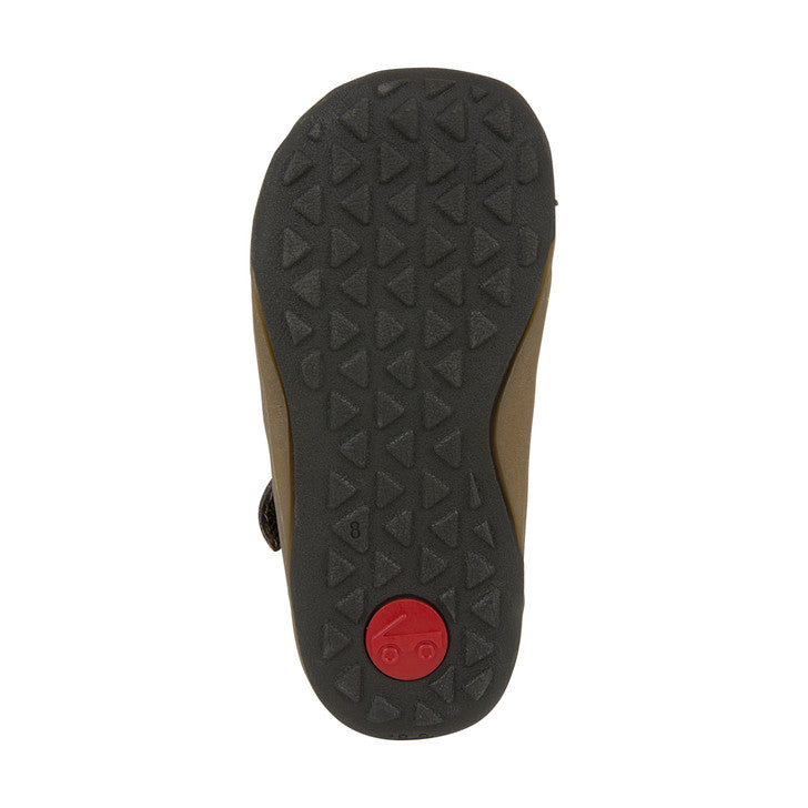 All-leather upper is flexible and lightweight. Flexible and lightweight TPR rubber outsole is non-marking and slip resistant. Triangle lug pattern provides grip and traction on multiple surfaces. Wide toe box promotes healthy foot development. Leather lining and footbed provide comfort through breathability. Hook-and-loop strap allows for a secure fit and custom adjustability. Awarded the Seal of Acceptance from the American Podiatric Medical Association (APMA). Care Instructions: Spot clean using a mild detergent and damp cloth. Allow to air dry.