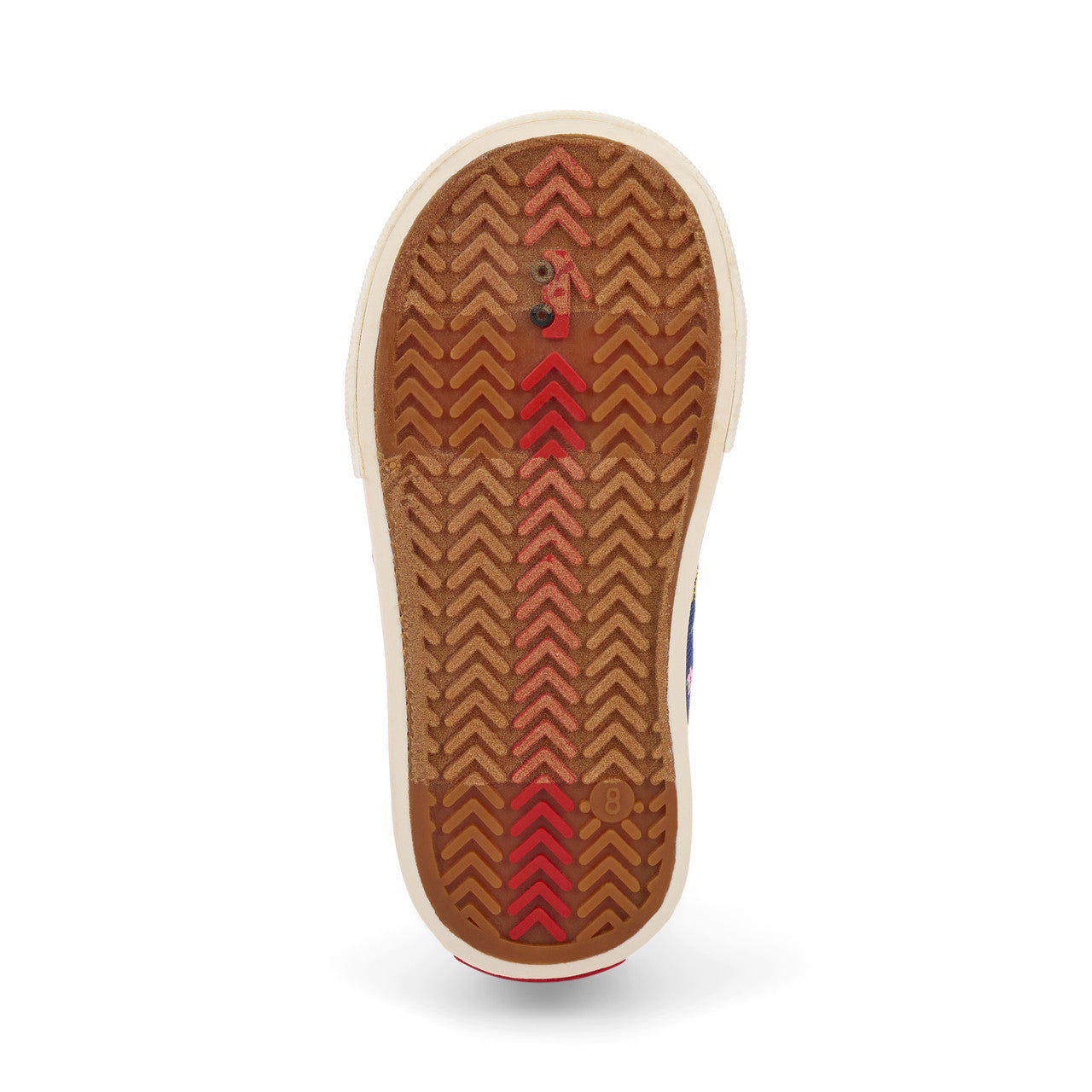 Flexible cotton denim upper with recycled polyester and rubber toe cap for protection. Breathable recycled mesh lining and removable, leather-lined footbed is contoured for all-day comfort. Natural rubber outsole with herringbone lug pattern provides great traction for play. Hook-and-loop strap and faux elastic laces allow for secure fit and custom adjustability. Classic SKR fit gives feet room to move and grow. Awarded the Seal of Acceptance from the American Podiatric Medical Association (APMA). Care Instructions: Spot clean using a mild detergent and damp cloth. Allow to air dry.