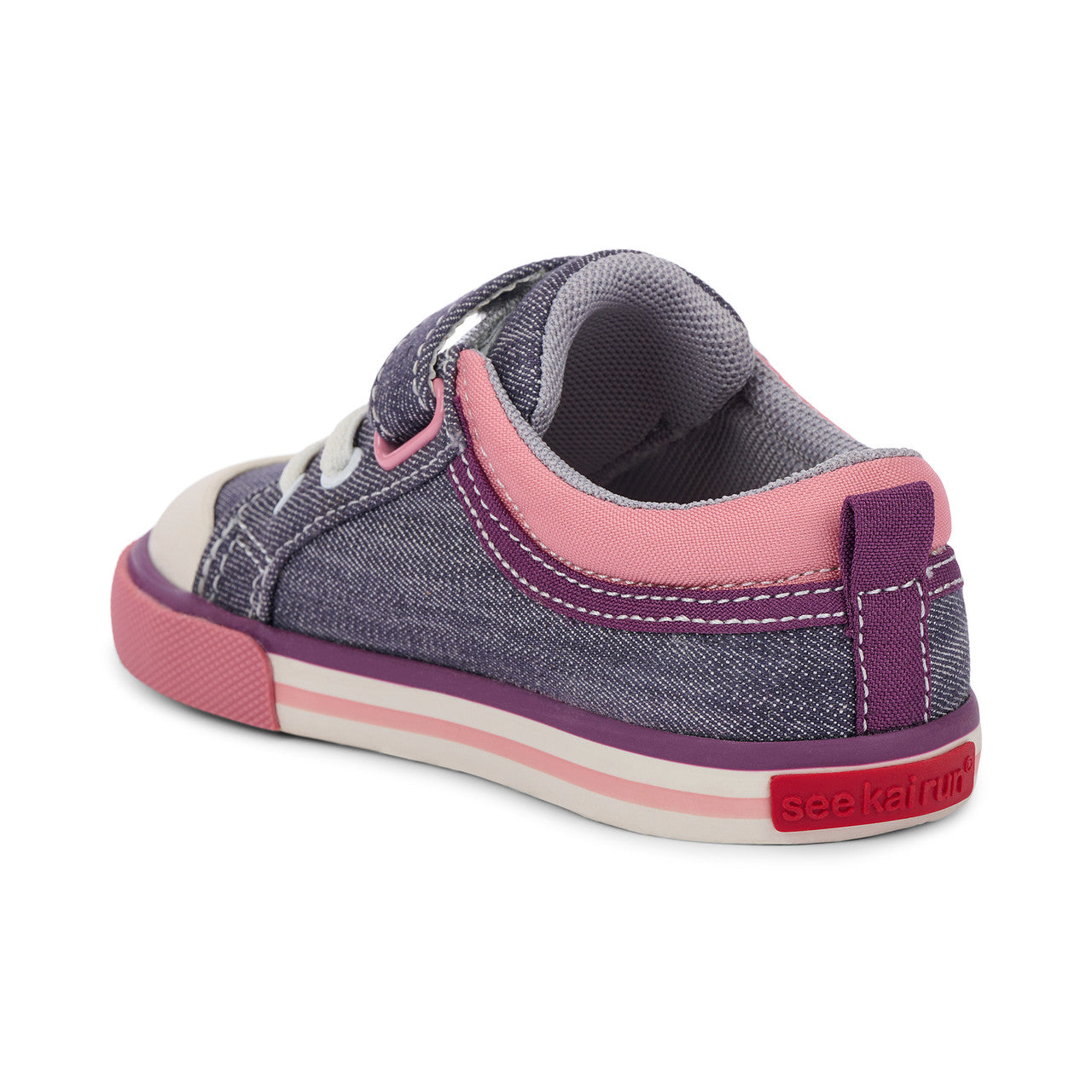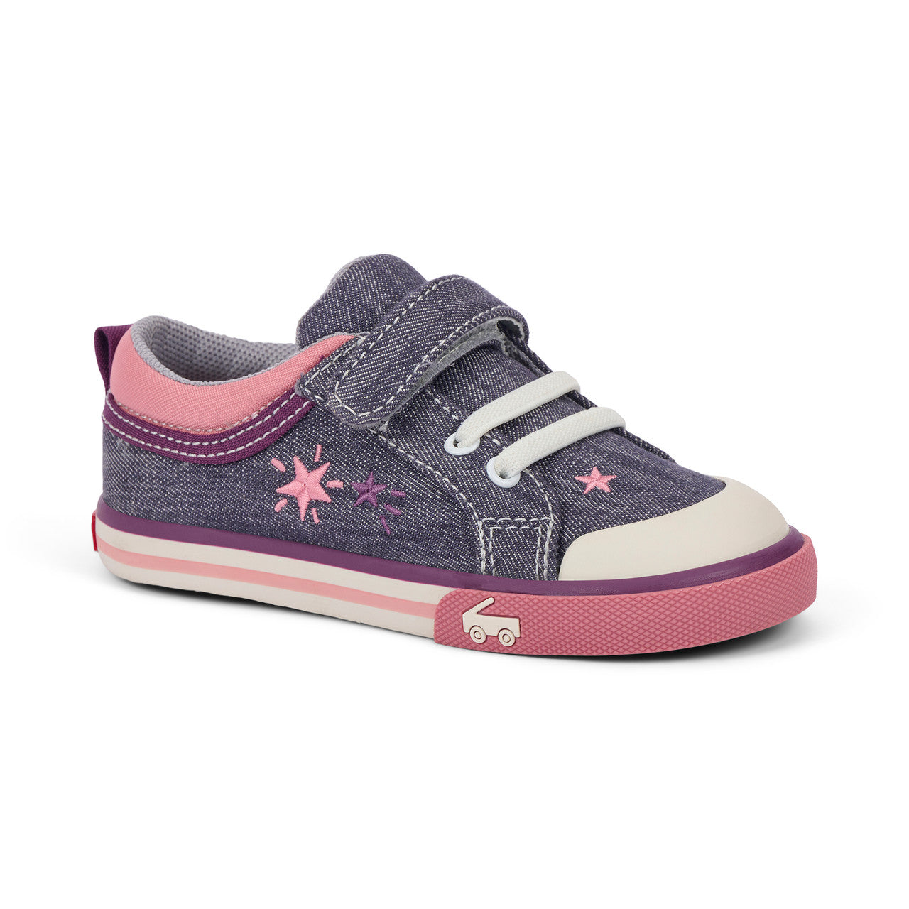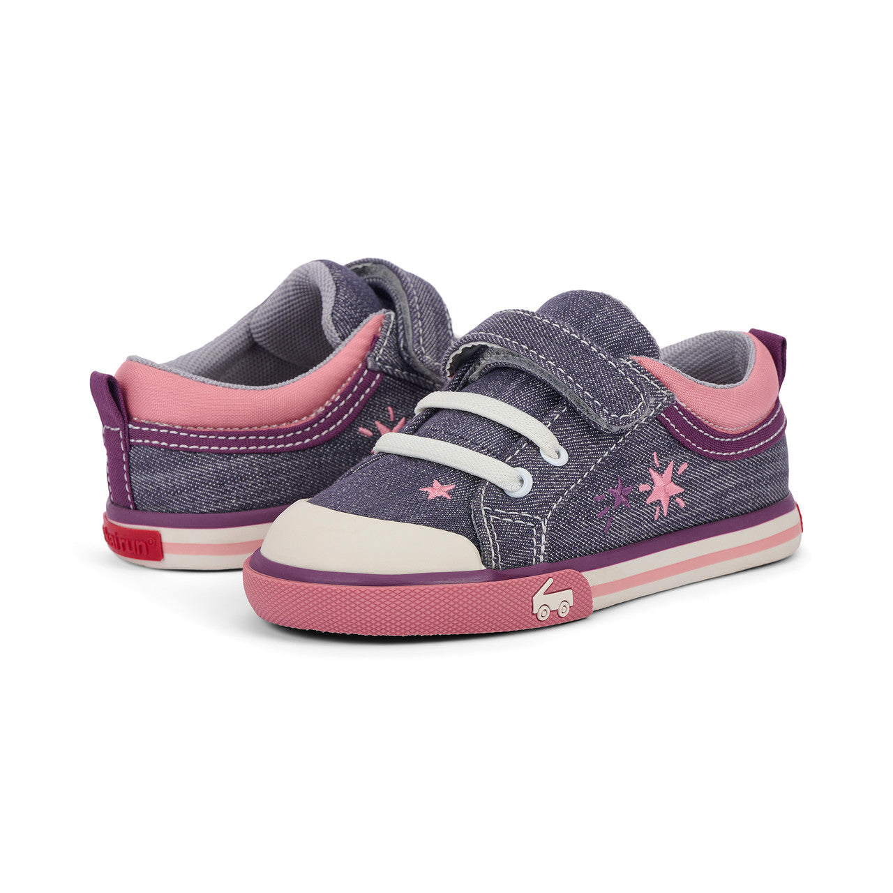 Unleash her inner star power with our classic Kristin sneaker, featuring embroidered pink and purple shooting stars on a gray denim upper. Consciously designed to be lightweight and comfortable for all-day play with durability and protection where she needs it the most; it’s the ultimate go-to shoe.