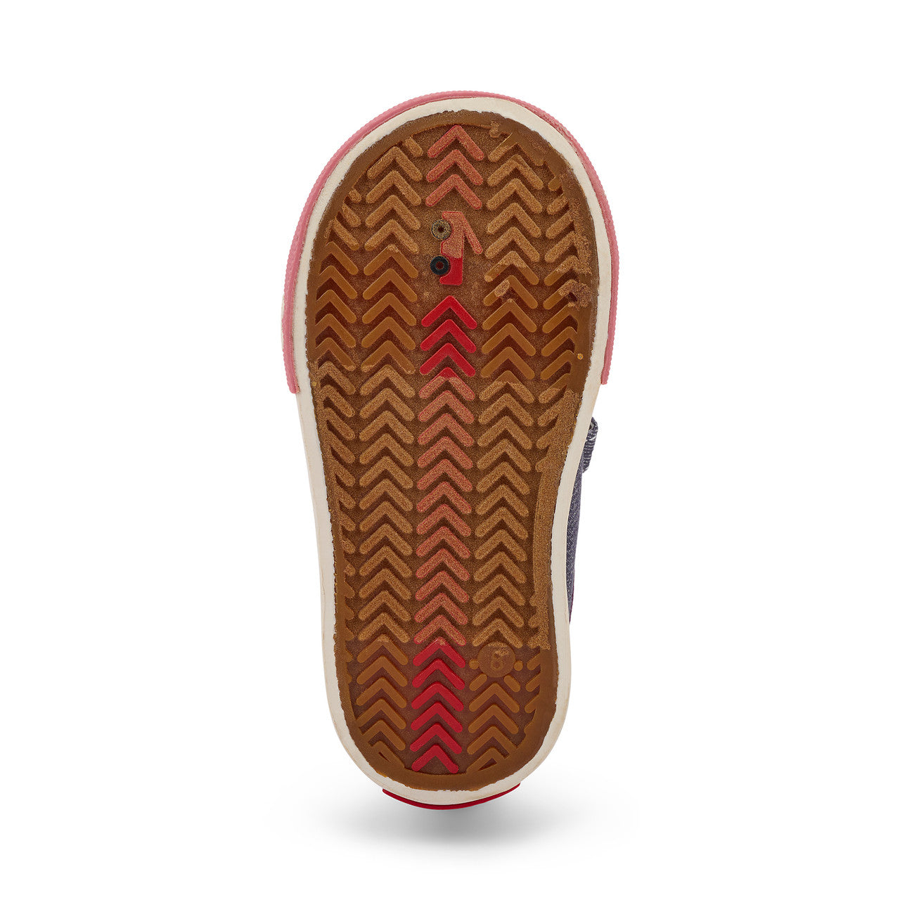 Flexible cotton denim upper with recycled polyester and rubber toe cap for protection. Breathable recycled mesh lining and removable, leather-lined footbed is contoured for all-day comfort. Natural rubber outsole with herringbone lug pattern provides great traction for play. Reverse hook-and-loop strap and faux elastic laces allow for secure fit and custom adjustability. Classic SKR fit gives feet room to move and grow. Awarded the Seal of Acceptance from the American Podiatric Medical Association (APMA). Care Instructions: Spot clean using a mild detergent and damp cloth. Allow to air dry.
