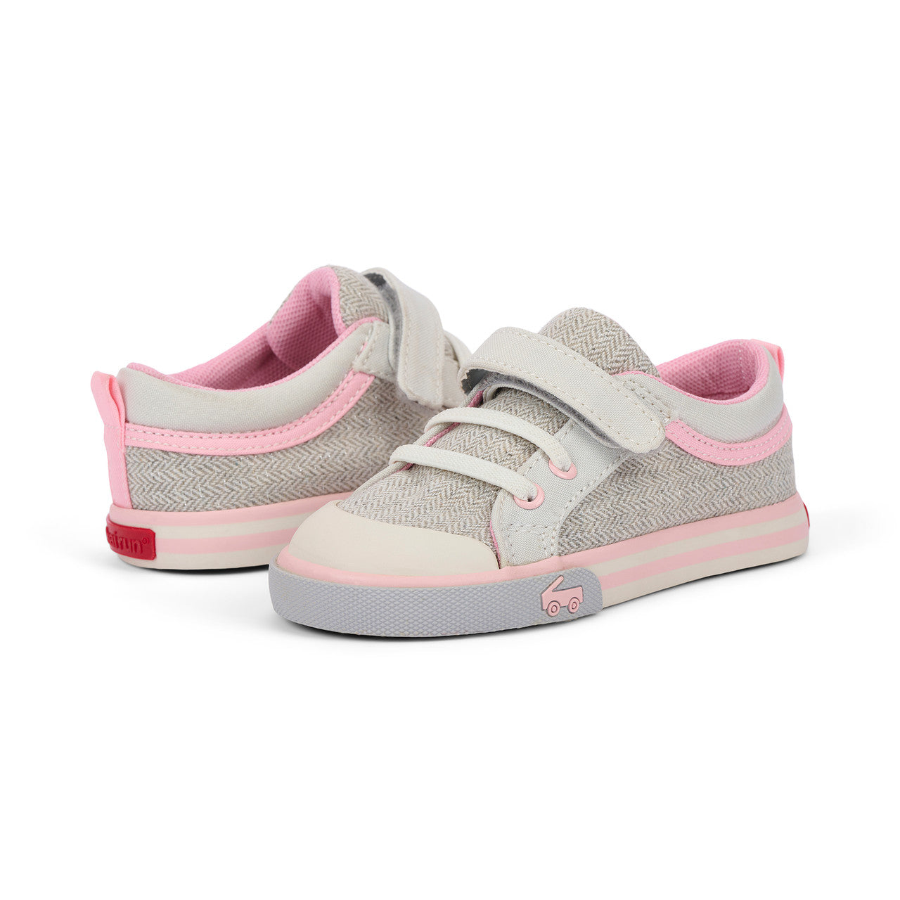 Herringbone woven textile upper with recycled polyester and rubber toe cap for protection. Breathable, recycled mesh lining and removable, leather-lined footbed is contoured for all-day comfort. Natural rubber outsole with herringbone lug pattern provides great traction for play. Reverse hook-and-loop strap and faux elastic laces allow for secure fit and custom adjustability. Classic SKR fit gives feet room to move and grow. Awarded the Seal of Acceptance from the American Podiatric Medical Association (APMA). Care Instructions: Spot clean using a mild detergent and damp cloth. Allow to air dry.