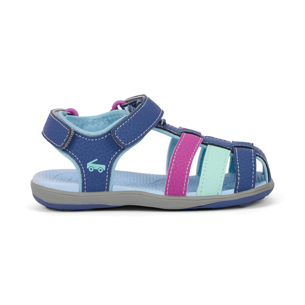 Make a splash with our Paley Dark Blue fisherman sandals with pink and mint highlights. These water-friendly sandals feature two points of adjustability for a secure fit, a cushy soft footbed, and a durable rubber outsole with a triangle lug pattern for whether they're playing on the beach or running through the sprinkler, these sandals are perfect for little adventurers.