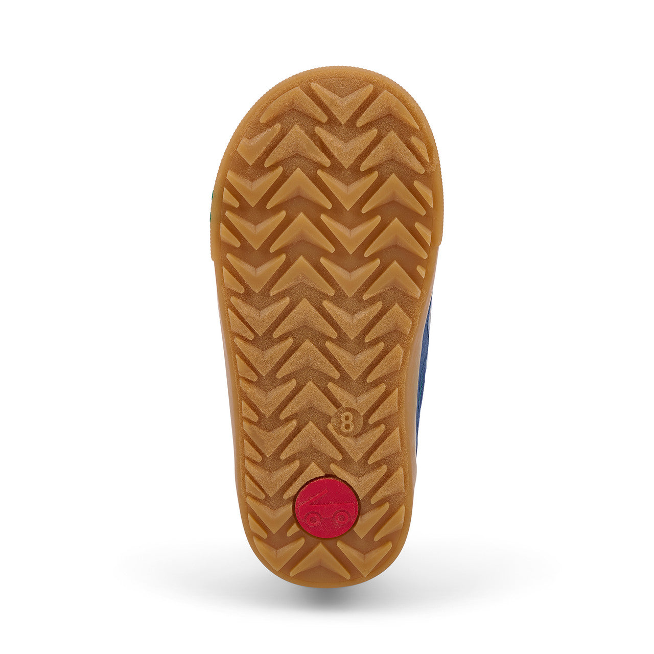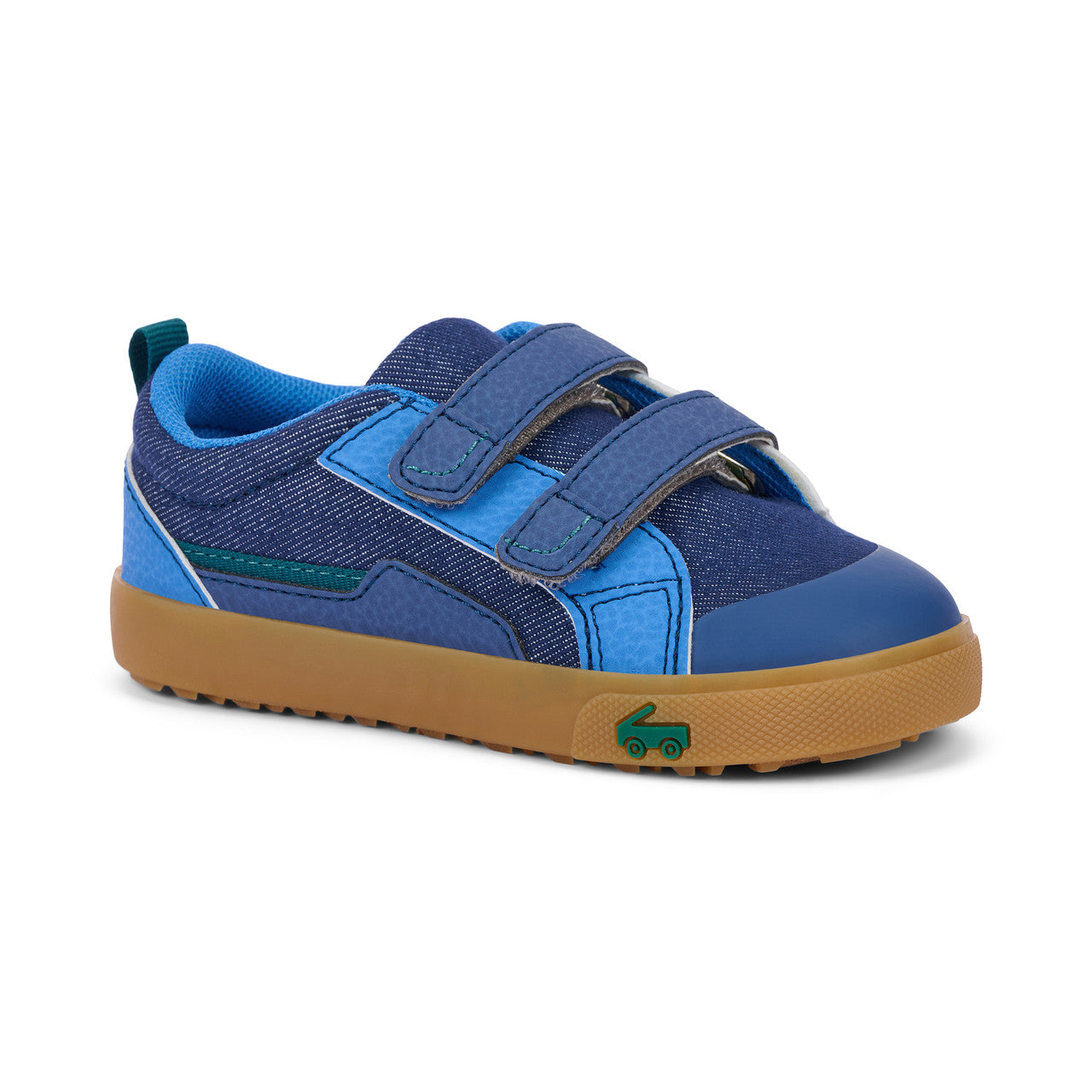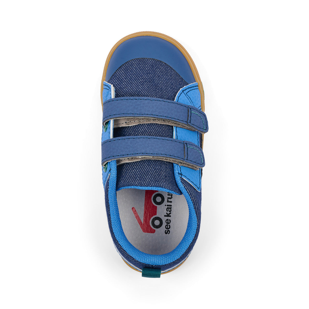 Cotton denim upper with nubuck-feel overlays and TPU toe cap for protection. Breathable, recycled mesh lining and removable, leather-lined footbed is contoured for all-day comfort. Natural rubber outsole with herringbone lug pattern provides great traction for play. Double reverse hook-and-loop straps allow for a secure fit and custom adjustability. Generous toe box provides room for healthy foot development. Care Instructions: Spot clean using a mild detergent and damp cloth. Allow to air dry.