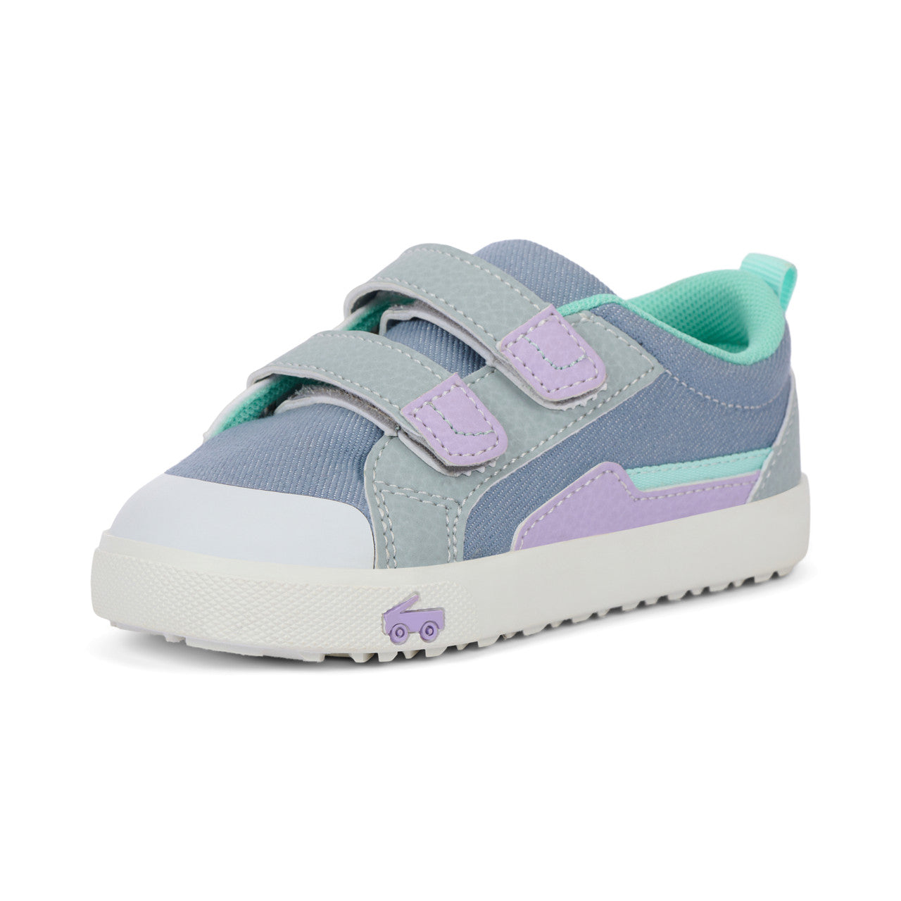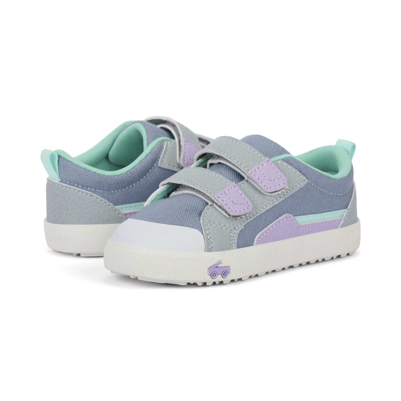 Gray cotton denim upper with nubuck-feel overlays and TPU toes cap for protection. Breathable, recycled mesh lining and removable, leather-lined footbed is contoured for all-day comfort. Natural rubber outsole with herringbone lug pattern provides great traction for play. Double hook-and-loop straps allow for a secure fit and custom adjustability. Generous toe box provides room for healthy foot development. Care Instructions: Spot clean using a mild detergent and damp cloth. Allow to air dry.