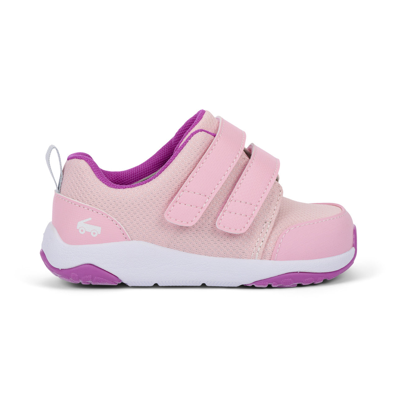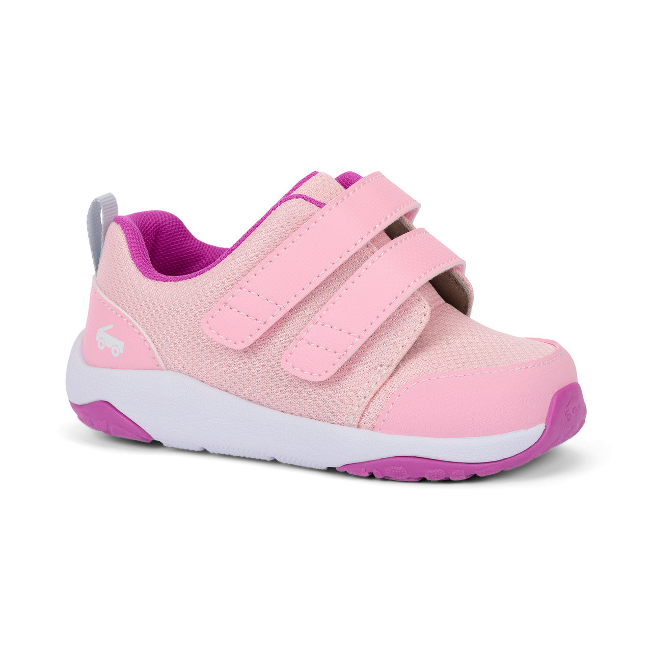 Order one size up if wearing with orthotics/AFOs.   Pink mesh textile upper with rubberized details and rubber toe cap for protection.   New, extra-durable microsuede lining for improved durability.   Removable footbed provides additional space for orthotics and braces.   Lightweight, cushioned FlexiRun EVA foam midsole. TPR full rubber outsole with traction inlays for excellent grip.   Double hook-and-loop strap is customizable and can be cut to fit. The straps’ unique hinge system keeps the straps open while putting shoes on.   Deep toe box lets toes wiggle and flex, which builds strength.   Vegan – made without any animal products.   Machine Washable    Care Instructions: Machine wash cold on gentle cycle with mild detergent. Do not bleach. Air dry.Â