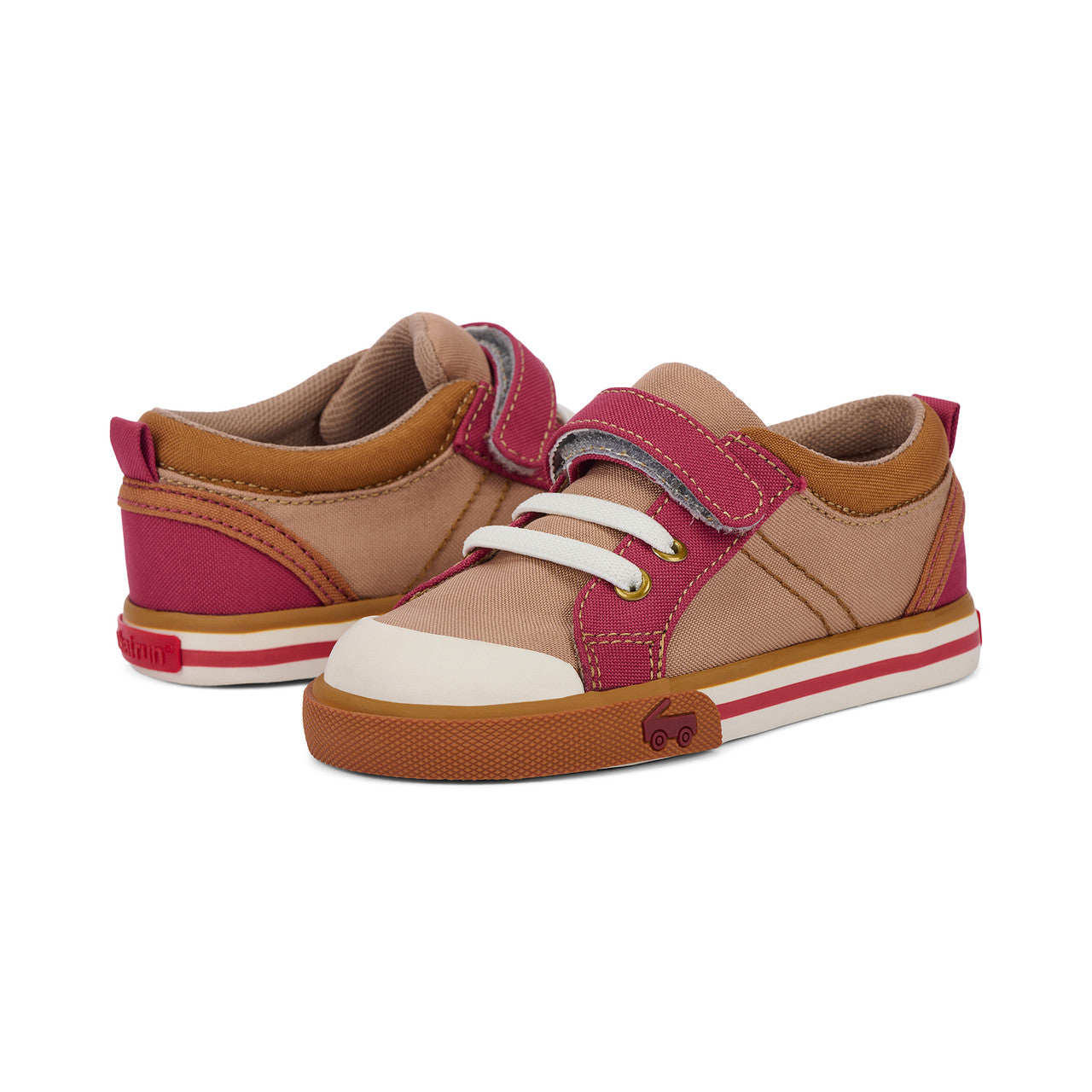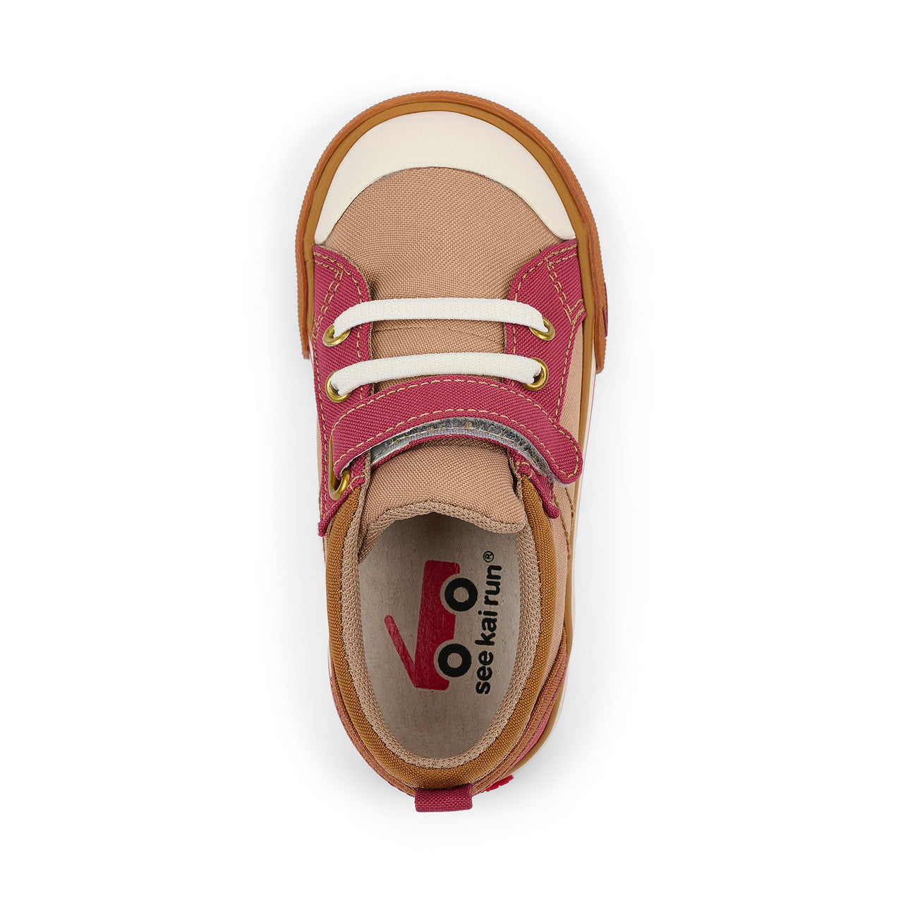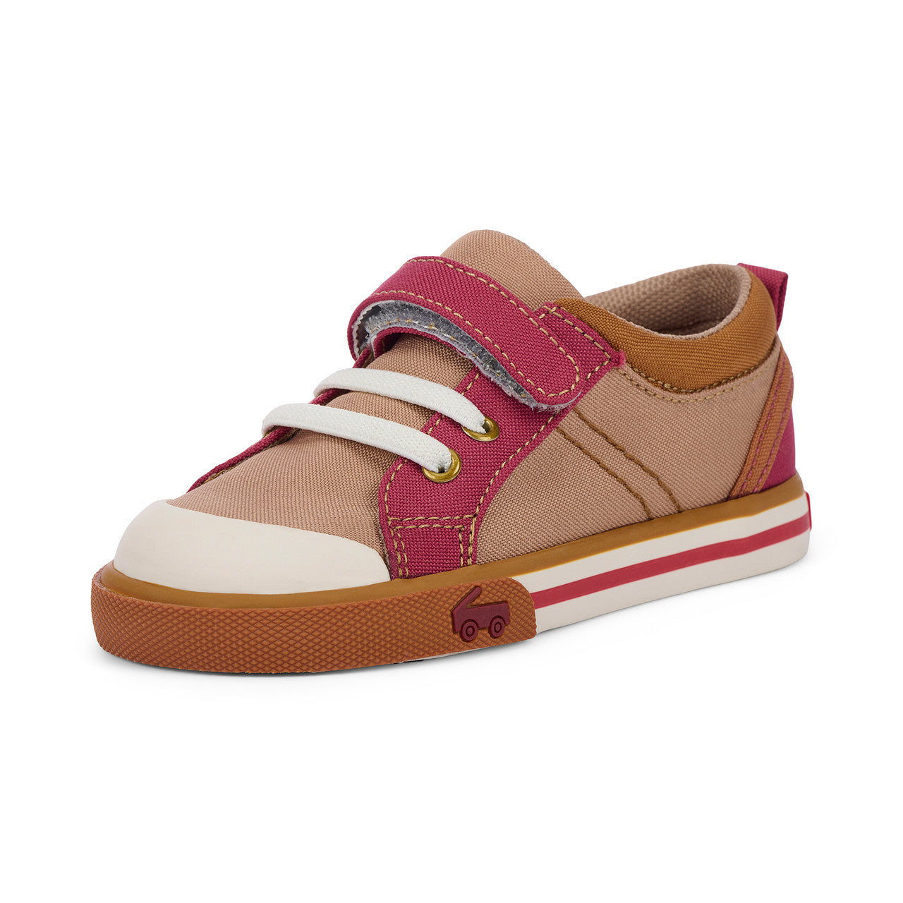 Durable, soft and flexible recycled polyester upper with rubber toe cap for protection. Breathable recycled mesh lining and removable, leather-lined footbed is contoured for all-day comfort. Natural rubber outsole with herringbone lug pattern provides great traction for play. Reverse hook-and-loop strap and faux elastic laces allow for secure fit and custom adjustability. Classic SKR fit gives feet room to move and grow. Awarded the Seal of Acceptance from the American Podiatric Medical Association (APMA). Care Instructions: Spot clean using a mild detergent and damp cloth. Allow to air dry.