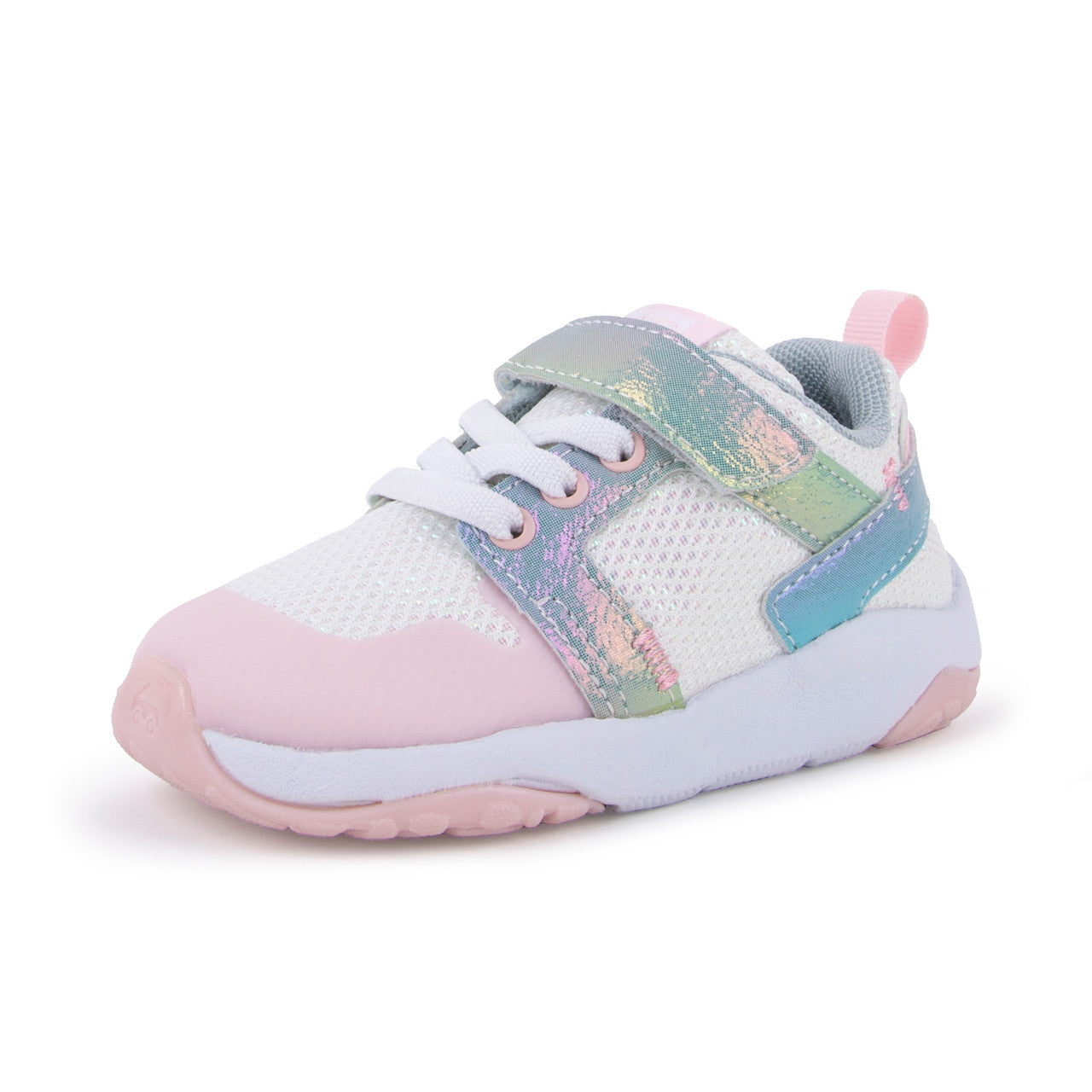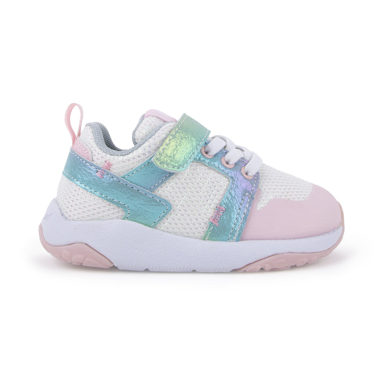 Featuring a shimmering mix of overlays—no two pairs are exactly alike—this magical take on our classic Viento brings a touch of mermaid magic to the playground. The breathable white mesh upper keeps her cool, while the cushy FlexiRun outsole and strategic traction inlays ensure all-day comfort for her next big adventure.