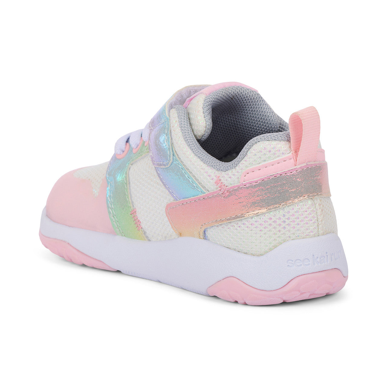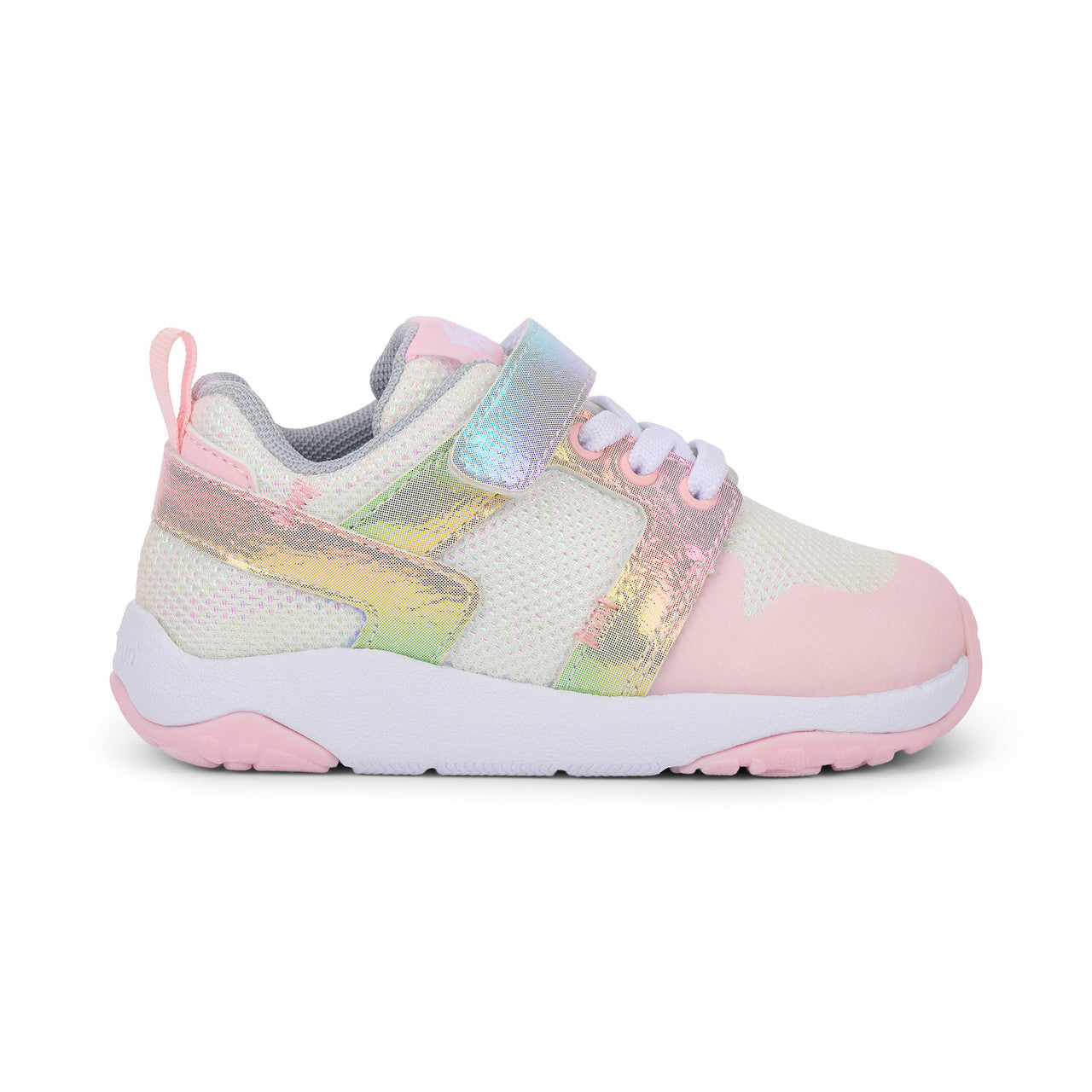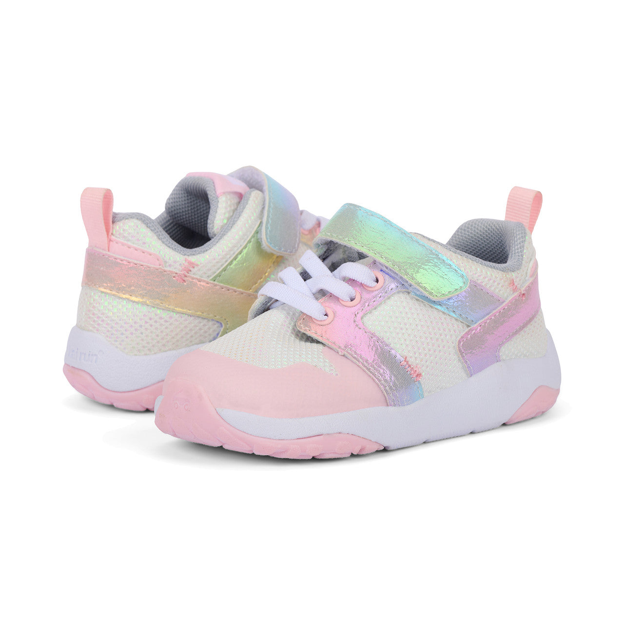 White mesh textile upper with one-of-a-kind, multi-colored nubuck-feel overlays and a TPU toe cap for added protection. Recycled mesh lining and EVA sockliner allows air movement for breathable comfort. Lightweight, cushioned FlexiRun outsole featuring EVA foam midsole and TR rubber traction inlays for excellent grip. Adjustable hook-and-loop strap and faux elastic laces allow for a secure fit. Generous toe box provides room for healthy foot development. Vegan – made without any animal products. Machine Washable Care Instructions: Machine wash cold on gentle cycle with mild detergent. Do not bleach. Air dry.