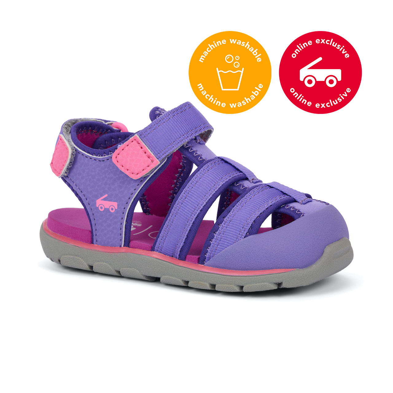 From poolside to water park, they’ll stay comfy and protected in the newly updated Wilder II. The flexible purple upper and soft jersey binding make it ideal for all-day wear, while the non-slip rugged outsole keeps her safe during her aquatic adventures. Purple upper with water-friendly webbing straps and supportive faux leather heel.
