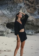Effortless Echo Boy Short Black is an ideal style for brunch dates or a coffee break. Designed with a breeze from 70’s, will be a timeless piece in your wardrobe that withstands trends for supporting slow fashion. Made with sustainability in mind, this short features breathable fibers. This high elastic waisted short is slightly oversized with side pockets, allowing you to move freely throughout the day.