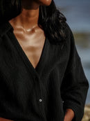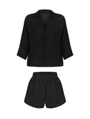 This effortless set offers a breezy and breathable feel, perfect for warm-weather styling. The oversized button-up shirt features a relaxed fit, classic collar, and dropped shoulders, making it ideal for layering or wearing solo. Paired with the matching shorts, designed with an elastic waistband for a comfortable and flattering fit, this set is the epitome of casual sophistication. Whether worn together for a coordinated look or styled separately for endless outfit possibilities, it’s a versatile addition to any wardrobe.