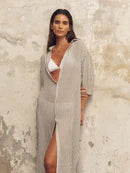 Featuring a button-down front and a relaxed fit, this versatile shirt dress offers effortless layering. Crafted from 100% Turkish cotton with soft, hand-loomed striped fabric, it can be worn open-front over swimwear or buttoned up as a chic beach cover-up. With a classic collar and rollable sleeves, it’s an essential addition to your summer wardrobe, perfect for beachside lounging or strolling through vacation days in style.