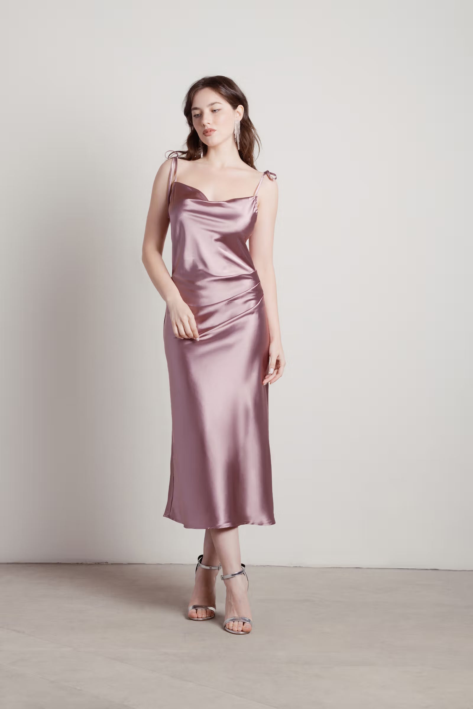 Tobi Charm Me Satin Cowl Neck Midi Dress