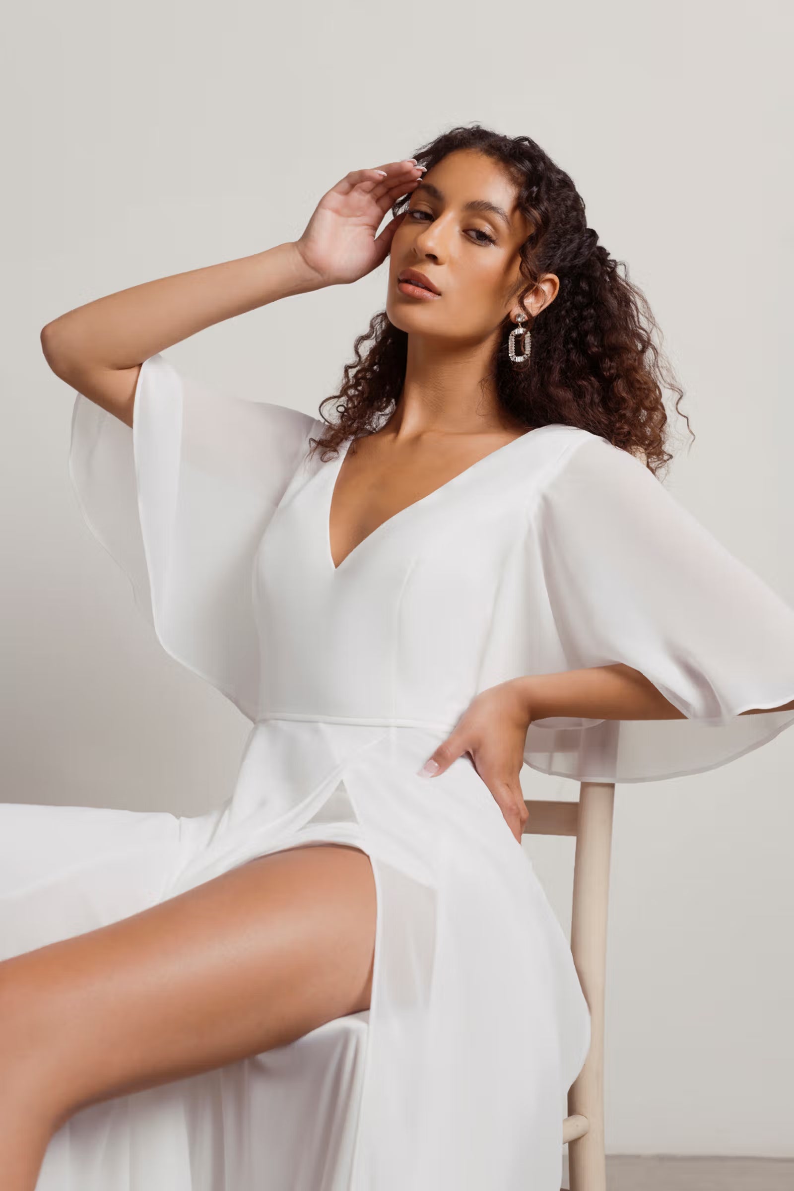 Elevate your elegance with the Come Closer To Me Butterfly Sleeve High Slit Maxi Dress - Emerald ! This enchanting dress features whimsical butterfly sleeves that add a touch of romance, while the dramatic high slit showcases your legs and creates a stunning silhouette. The rich emerald hue radiates luxury, making it perfect for upscale events or unforgettable evenings.
