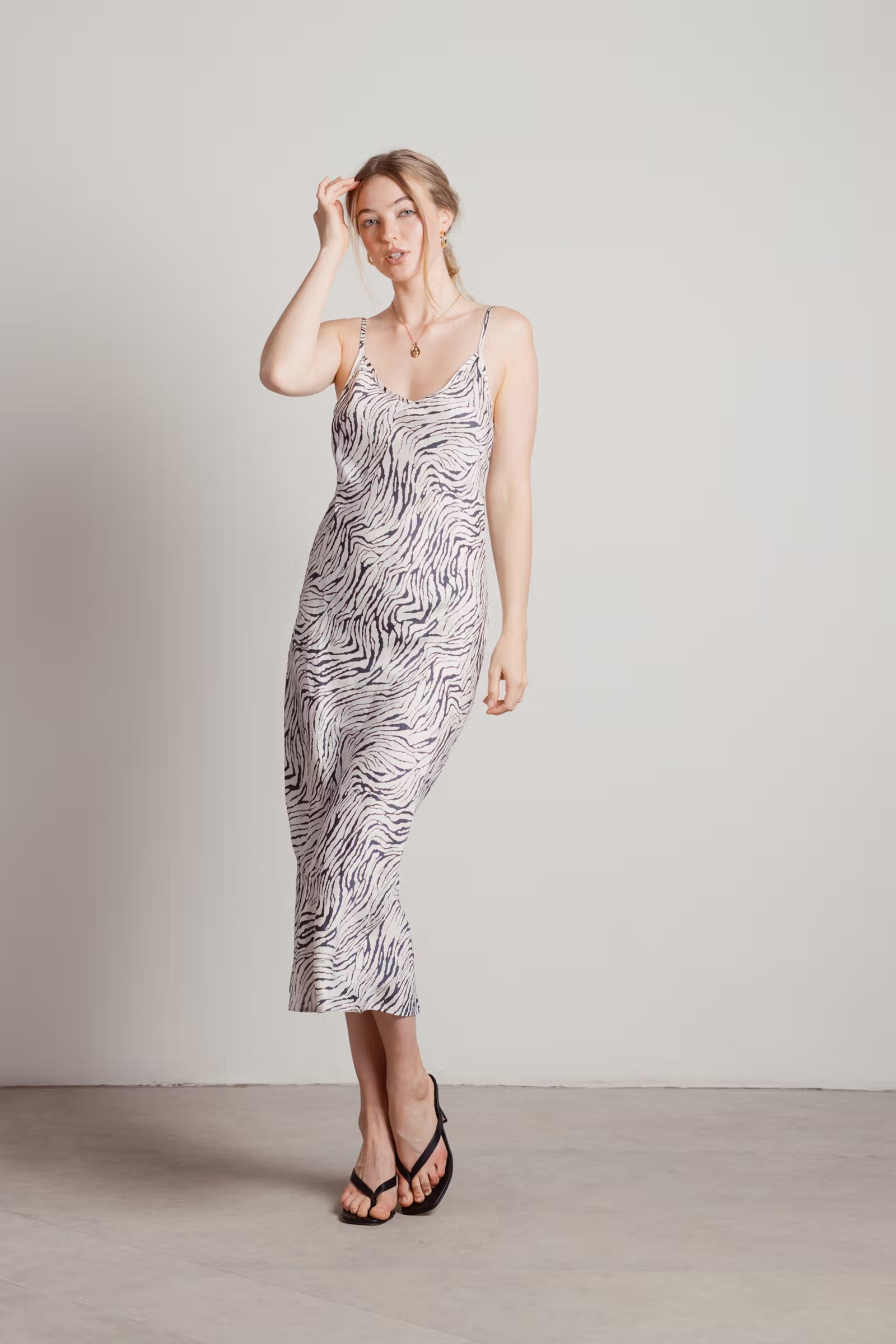 Unleash your wild side with the Hear Me Purr Tiger Print Slip Midi Dress - Mocha ! This stunning dress features a fierce tiger print that’s sure to turn heads and make a statement. The silky slip design drapes beautifully over your curves, providing a flattering fit that exudes confidence and elegance. Perfect for a night out or a chic dinner, this dress can easily be dressed up or down. Pair it with strappy heels for a bold look or stylish boots for a more casual vibe.