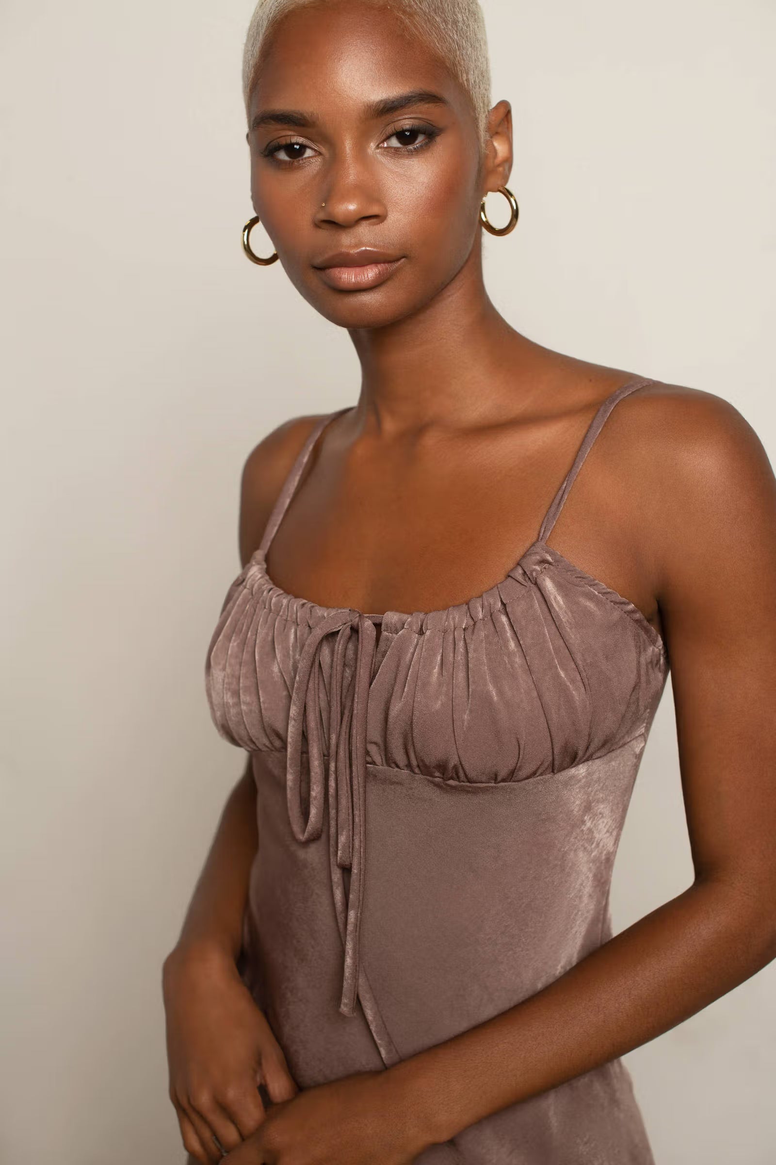 Unleash your inner goddess with the In My Element Satin Ruched Skater Mini Dress in Beige! This enchanting dress features a flattering ruched design that accentuates your curves while providing a playful skater silhouette. The luxurious satin fabric drapes beautifully, making it perfect for dancing the night away or enjoying with friends. With its adjustable straps and vibrant hue. Pair it with strappy heels and bold accessories for a look that’s undeniably fabulous and always in style!