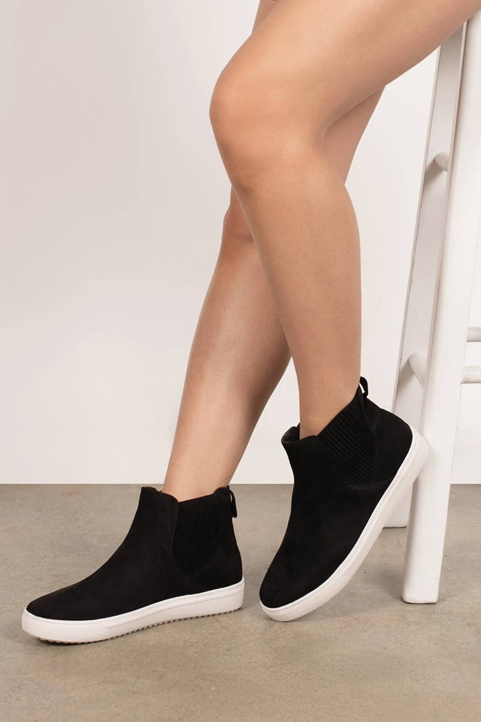 Description Step into effortless style with the Clarita Sneakers, a perfect blend of elegance and comfort. These high-cut black sneakers are crafted with premium materials and feature a sleek design that exudes modern sophistication. The durable rubber sole ensures both stability and comfort, making them ideal for any occasion.