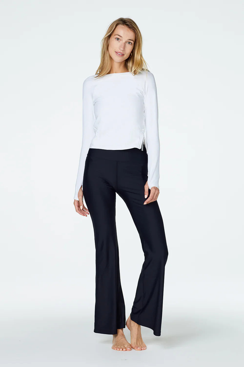 Our Juliette Palazzo pant gives a whole new meaning to sunwear chic. This sophisticated yet comfortable pull-on pant was designed with a slimming waistband and flare leg to flatter any shape. Juliette perfectly pairs back to our Lola bodysuit or Sasha tee.